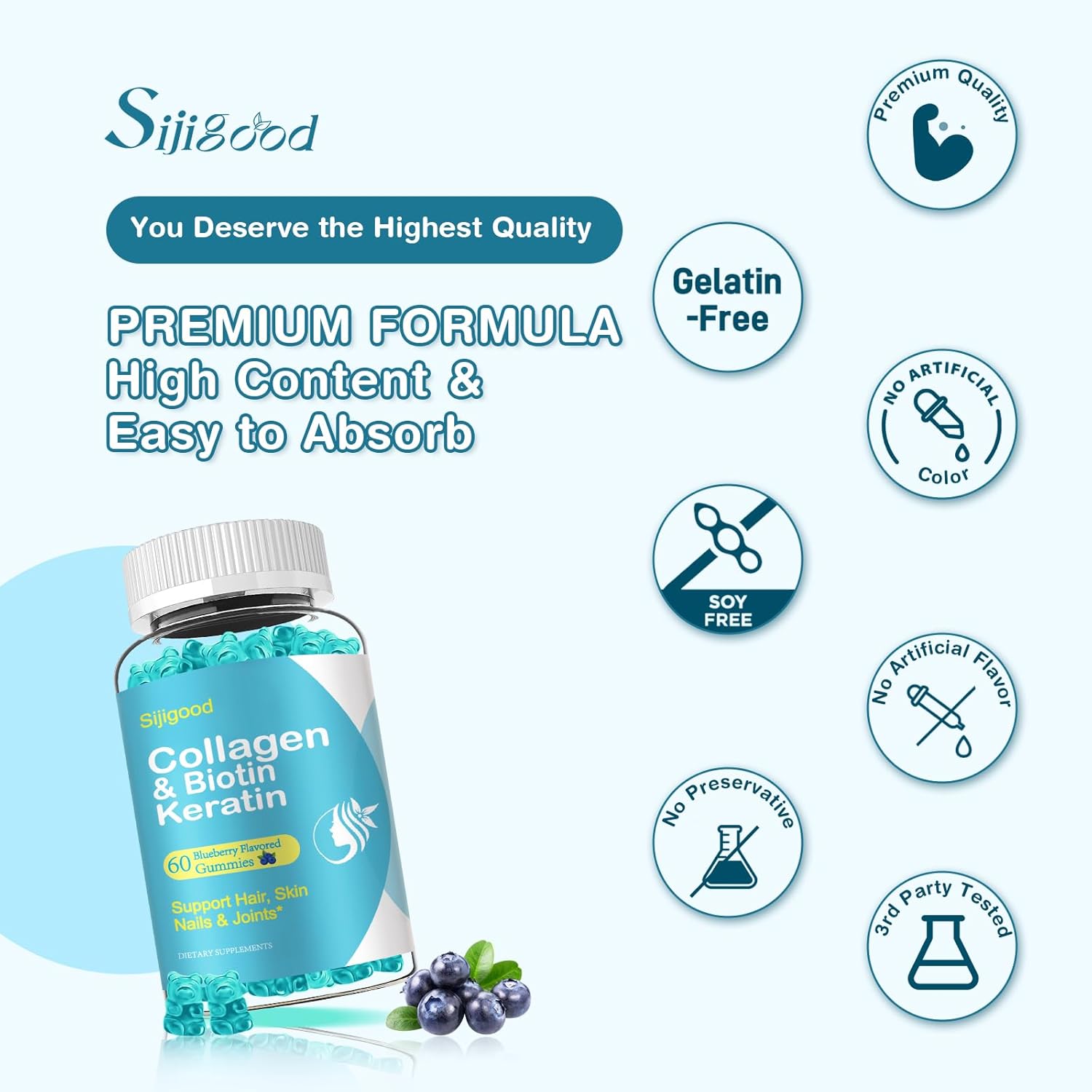 2 Pack Biotin Gummies with Collagen, Keratin, Hyaluronic Acid, Vitamin for Skin, Hair Growth, Nails, Women Men Adults Kids – Blueberry Flavored, 120 Gummies