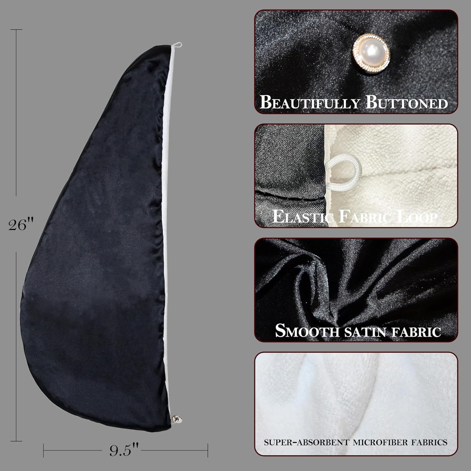 2 Pack Satin Microfiber Hair Towel Wrap – Anti Frizz Hair Drying Towel Wrap for Wet Hair,Silk Satin Hair Wrap for Sleeping,Drying Hair Twist Head Towels for Wet Hair Long Hair
