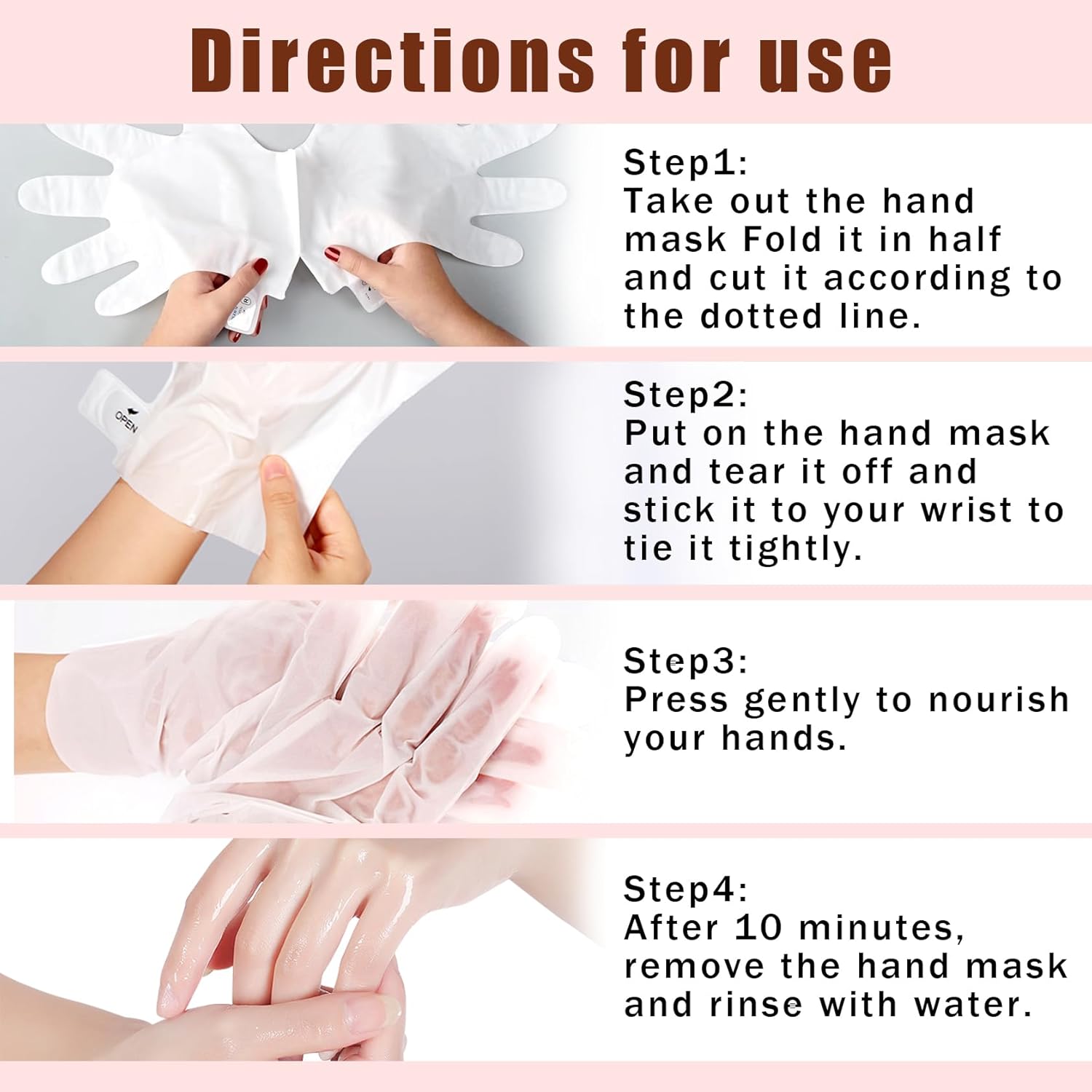 Hand Care: Rich in moisturizing ingredients, hand mask helps to replenish moisture to dry hands, leaving them looking baby-soft and delicate, helping you to regain the beautiful skin of your youth, making it the perfect choice for hand care