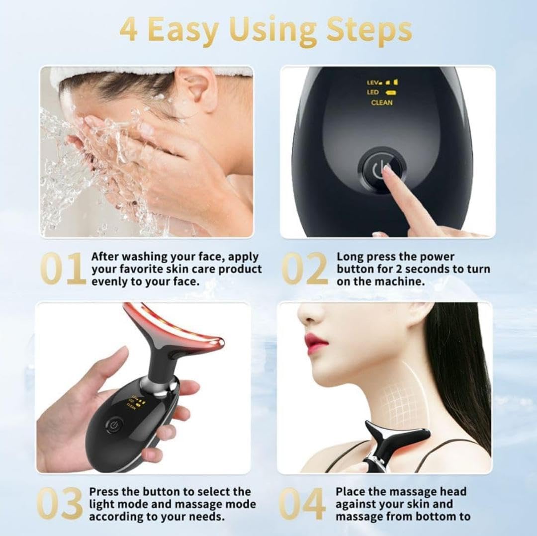 7-in-1 LED Face & Neck Massager – Skin Firming, Anti-Aging, Vibration & Heat Facial Tool for Home Use – Red & Blue Light Therapy – Model ES-1081