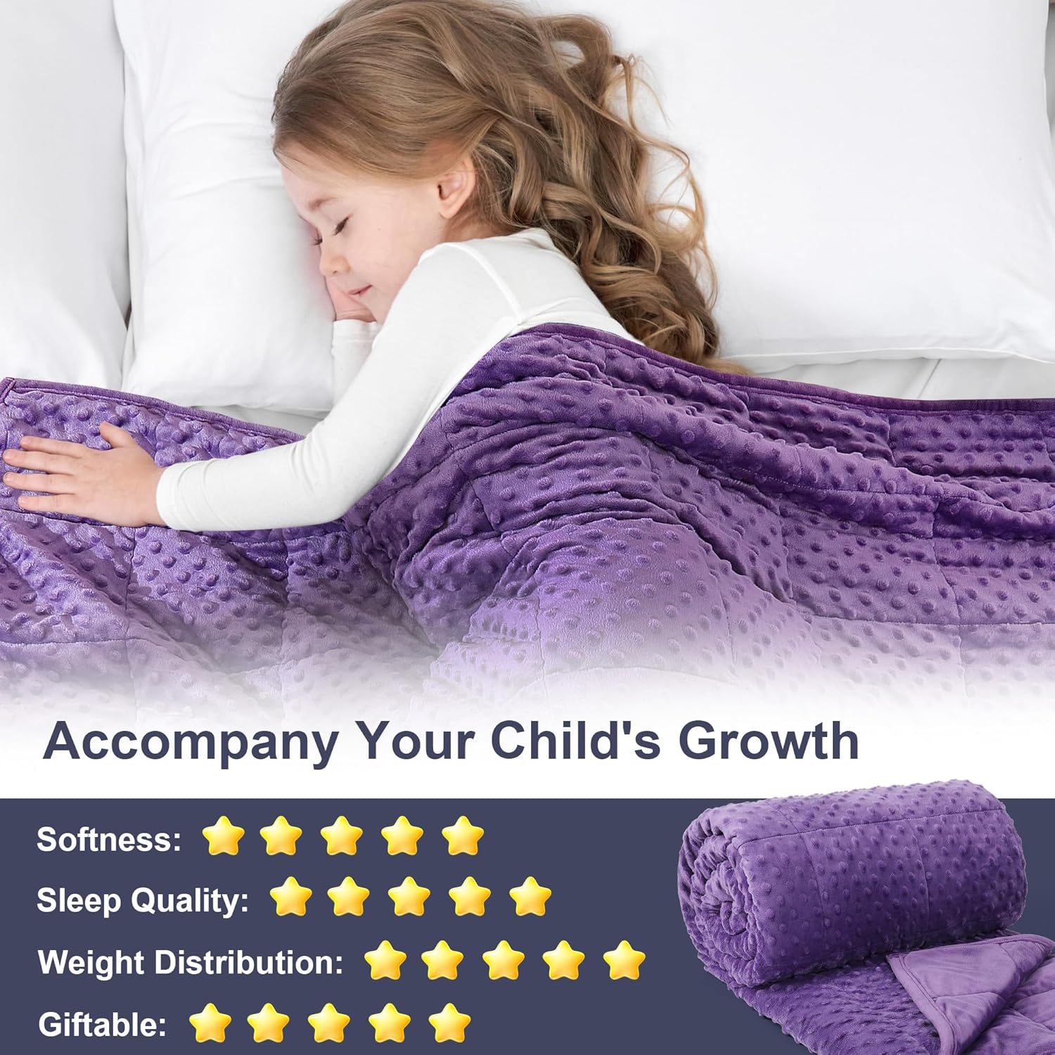 Alomidds Weighted Blanket, Luxury Velvet Weighted Blankets for Kids,Warm and Breathable Soft and Comfort Minky, Cute Heavy Blanket with Premium Glass Beads (41″x60″ 7LBS, Purple)