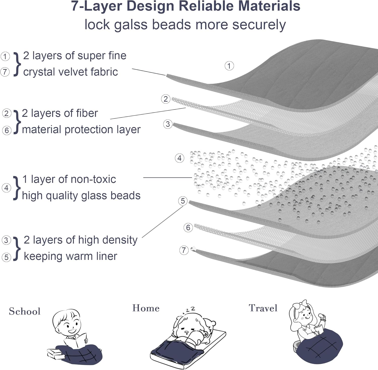 Comfortable Material : The weighted blanket surface is made of soft ultra-fine crystal velvet fabric, which is warm and breathable. Suitable for all seasons