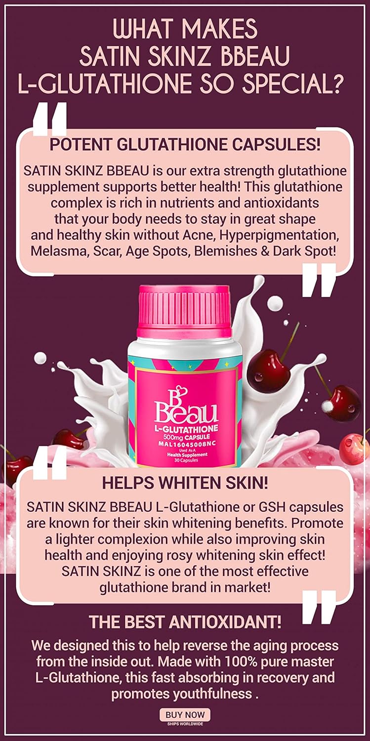 Two in One Flawless Skin Combo: Enjoy dewy and luminous skin with the Glutathione skin whitening pills and Vitamin C Plus Two packs together natural dietary supplement contains 500mg of a Glutathione blend that can have a major impact on the aspect of dark spots, hyperpigmentation, and scars. Powerful Effects: Our Glutathione whitening pills can help fade away scars and dark spots, as well as reduce hyperpigmentation. The natural herbal pills is simple solution to take care of acne-prone skin from the inside out and outside and give you that glow from inside out. Forget about other skin whitening products and enjoy the full benefits of our glutathione supplements , Vitamin C . Everything you need in one pack! Rich In Antioxidants: These skin whitening pills contain 500mg of glutathione, a powerful antioxidant that can help counteract free radicals. These whitening capsules can reduce oxidative stress and may have powerful anti-aging effects on all skin types. Clean Formula: The premium whitening pills and free of artificial coloring or fragrance with no side effect.
