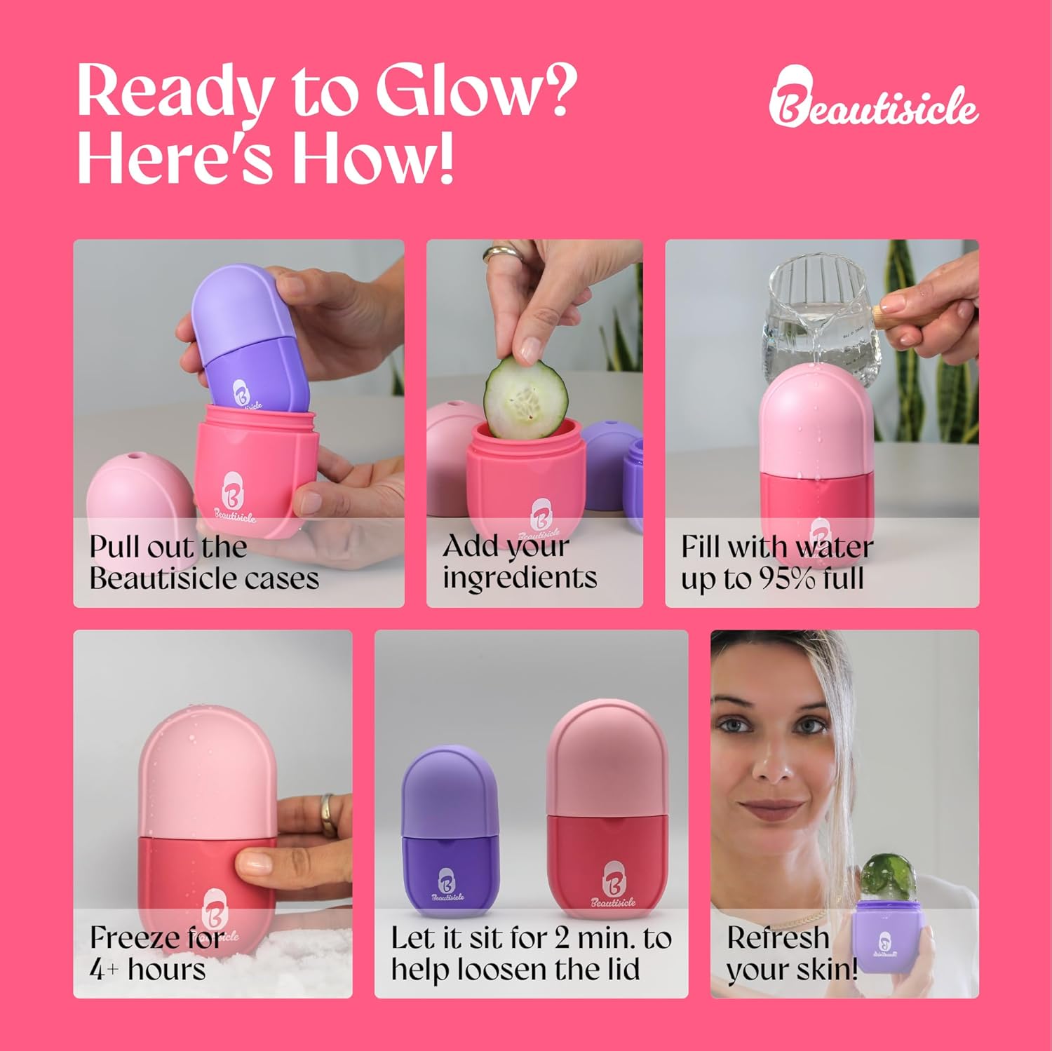 BEAUTISICLE FACIAL ICE ROLLER: Refresh your skin and reduce puffiness with this convenient pack of two ice rollers. Ideal for brightening under-eye areas, tightening pores, and enhancing skin elasticity for a smoother, more vibrant look.
