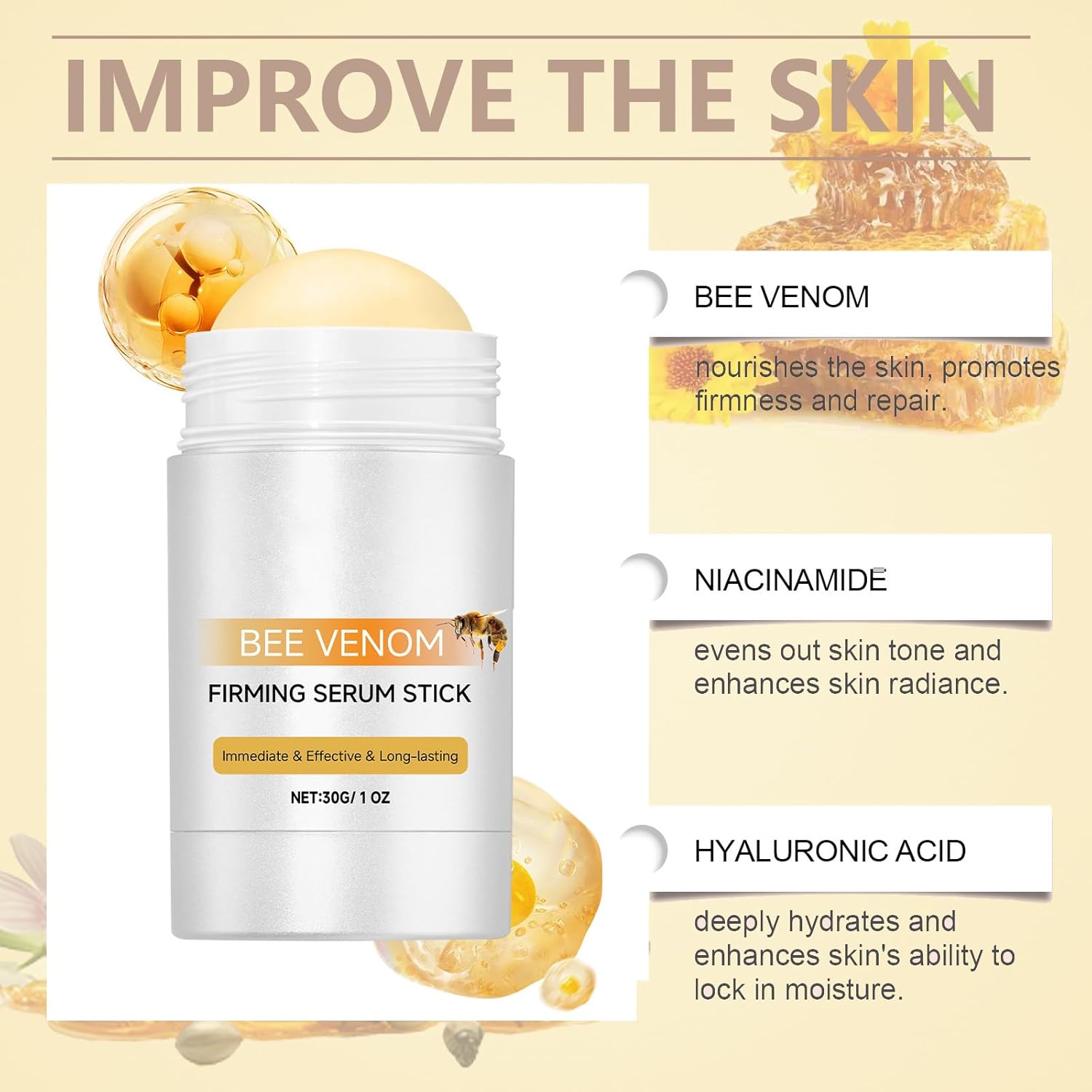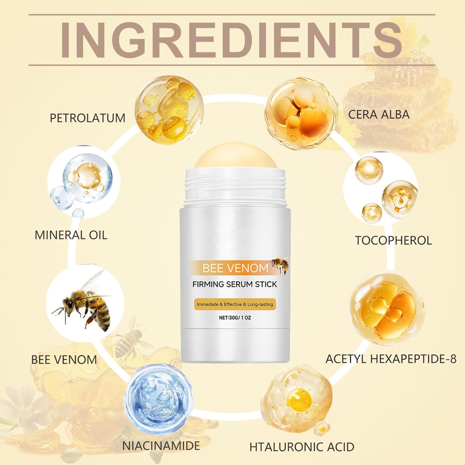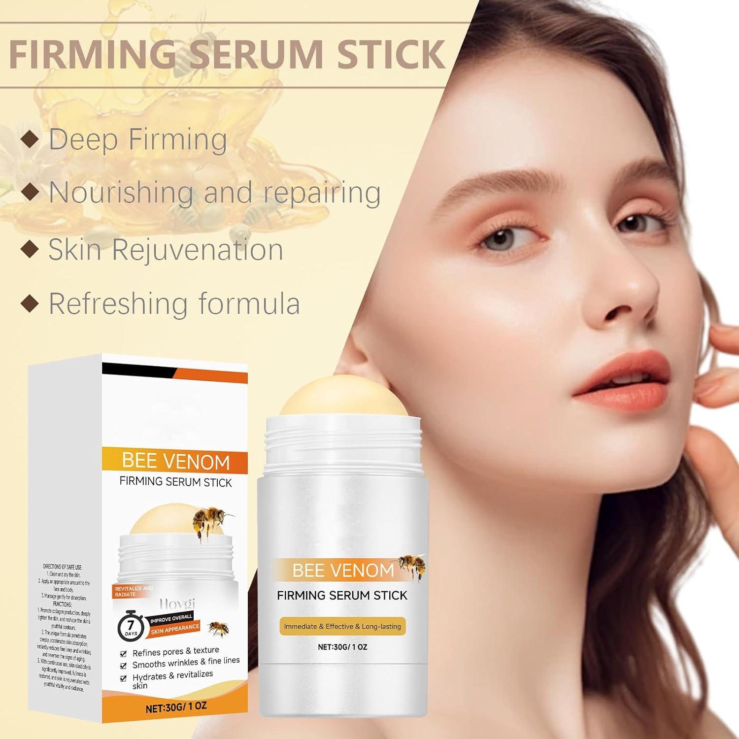 【Bee Venom Firming Serum Stick】 Our collagen serum stick is a comprehensive cream that for fine lines and wrinkles. Help you to restore the smooth, plump, and healthy look of your skin.