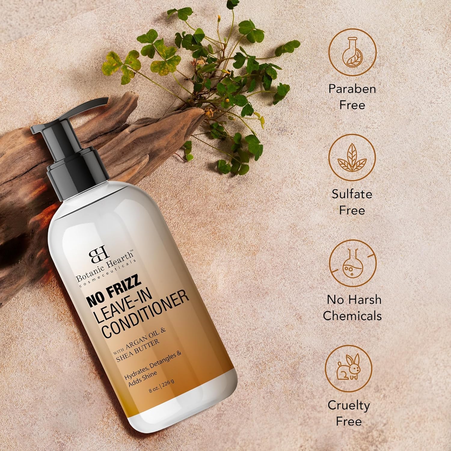 Ethically Sourced & Cruelty-Free: Botanic Hearth’s No-Frizz Leave In Conditioner is cruelty-free, with no nasty chemicals and no added colors