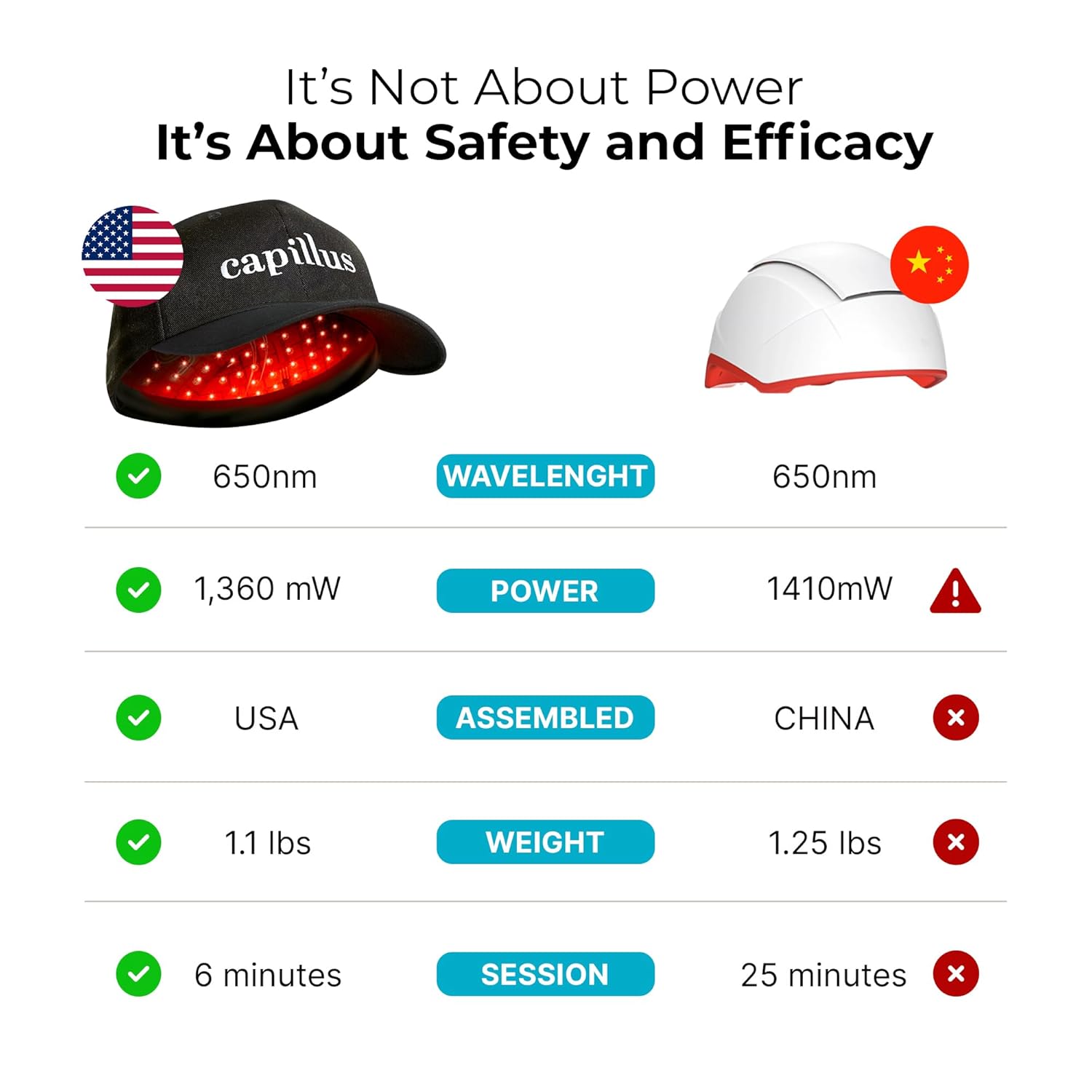 Capillus Cap Features Red Light Therapy For Scalp 6 Minutes Daily Proven Technology Assembled In The USA Built With LLLT Diodes Assembled in the USA