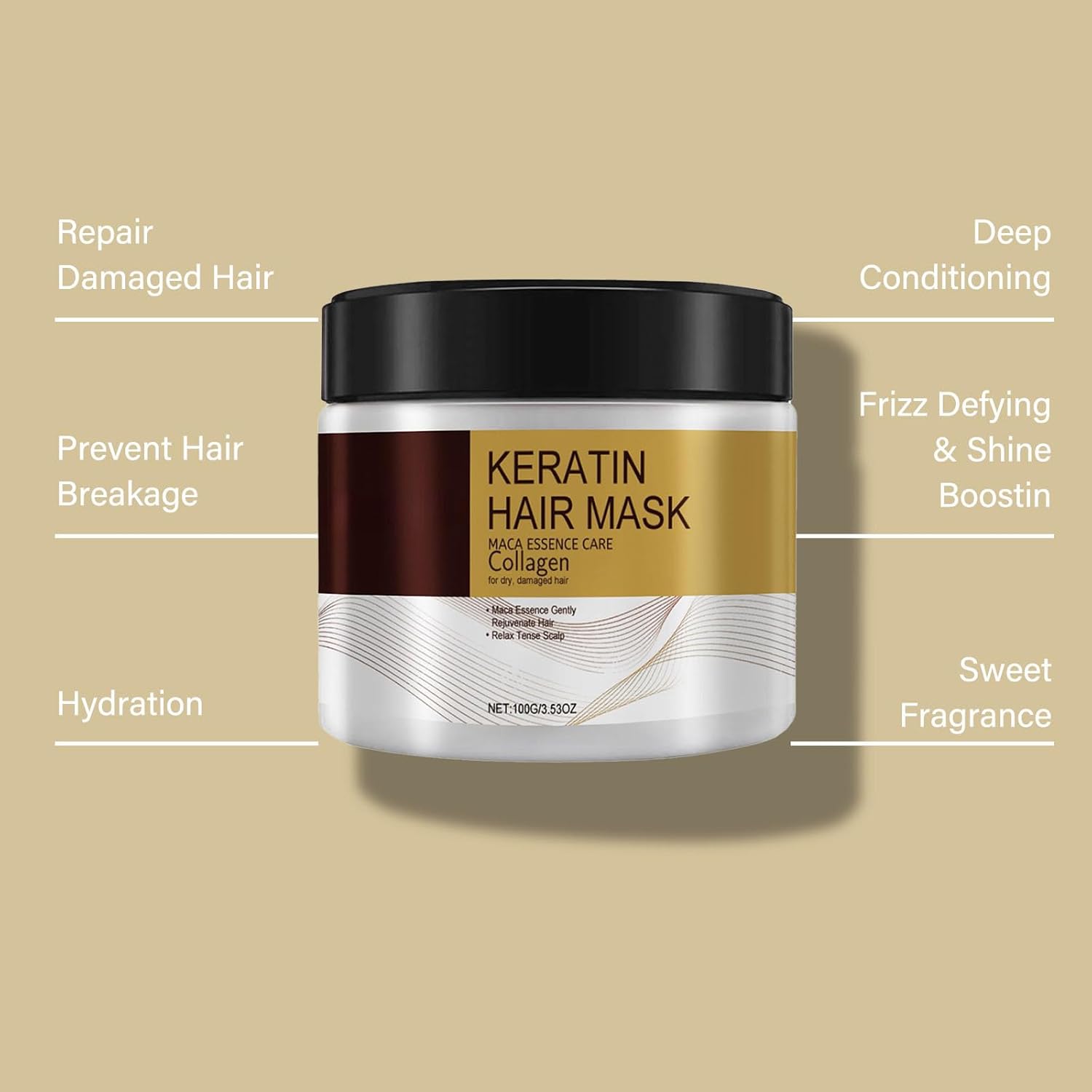 Collagen Hair Mask for Damaged Hair – Deep Repair Conditioning Argan Oil Treatment for Curly or Straight Thin Fine Hair 100ml