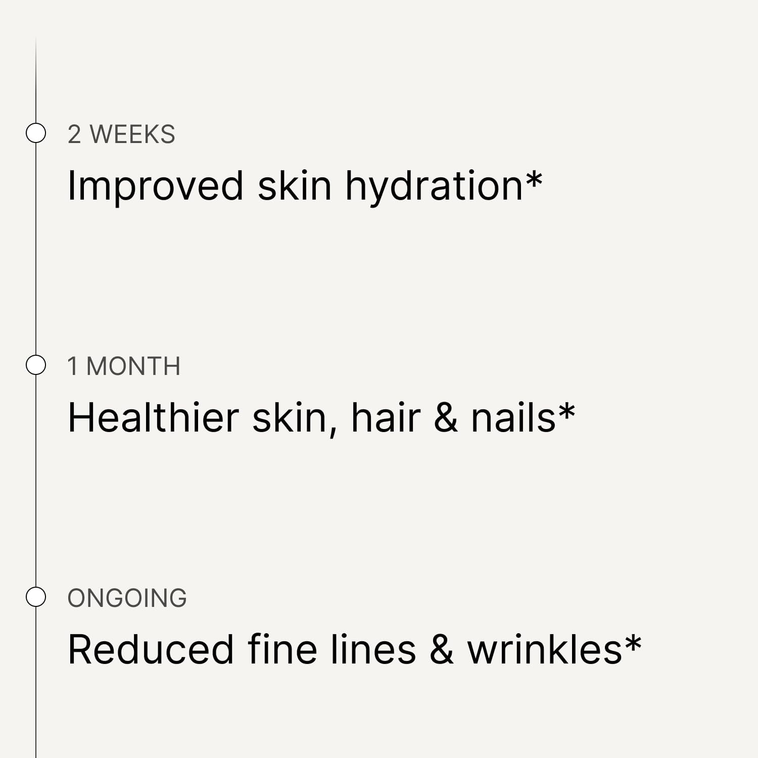 Skin Elasticity – Made with low molecular weight collagen peptides for better absorption, helping to improve skin texture, firmness, and smoothness.*