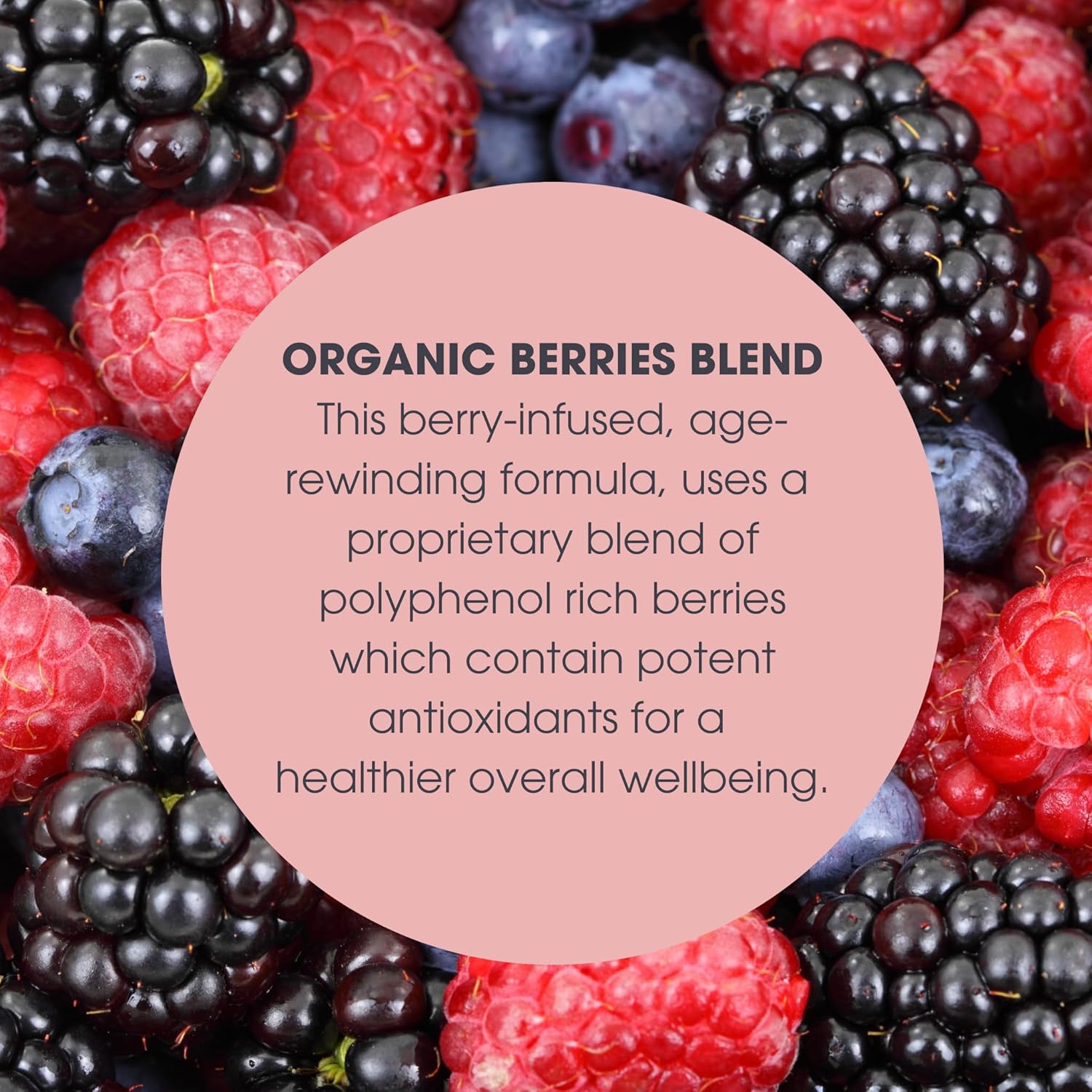 ORGANIC BERRIES BLEND – This berry-infused, age-rewinding formula, uses a proprietary blend of polyphenol rich organic berries which contain potent antioxidants for a healthier overall wellbeing