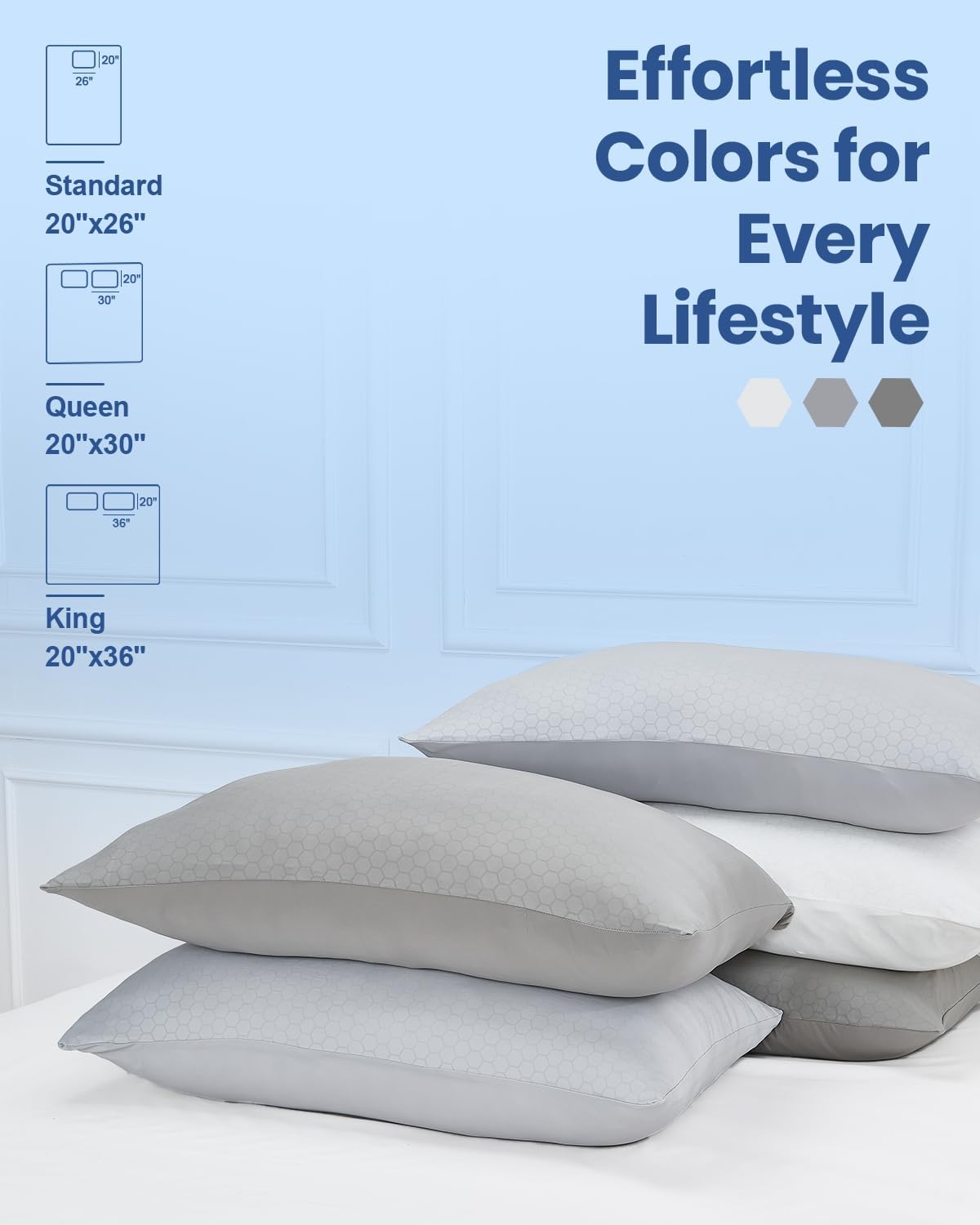 【HIDDEN ZIPPER DESIGN】Our cooling pillowcases feature a hidden zipper that allows you to safely hide the pillow inside the pillowcase and easily put it on and take it off. You can simply slip it on any pillow and enjoy the cooling, temperature-controlled benefits without having to buy a whole new pillow.
