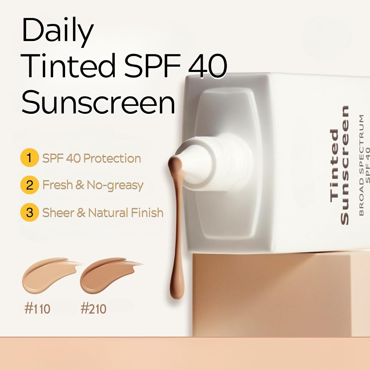 【Effortless Natural Finish】- SPF 40 mineral tint-ed sunscreen provides natural-looking sun protection without white cast. tint-ed SPF 40 lightweight formula seamlessly blends with light skin tones for daily coverage, avoiding heaviness or cakiness. Controls excess oil while maintaining skin freshness throughout the day
