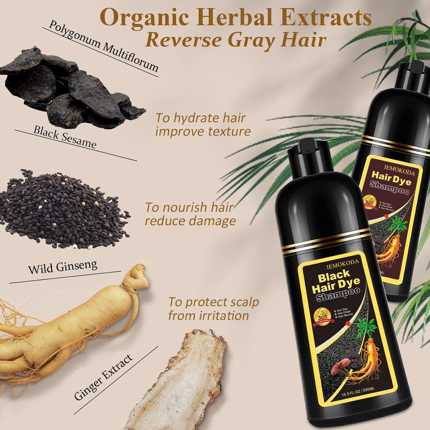 【Cleanse And Condition While You Color】: Our magic 3-in-1 hair color shampoo colors, cleanses, and conditions your tresses all at once! Make your hair soft, shiny and manageable after dyeing. Infused with herbal ingredients like Polygonum Multiflorum to anti-gray hair; Ginseng to nourish hair follicles. (Perfect gifts for parents and elders)