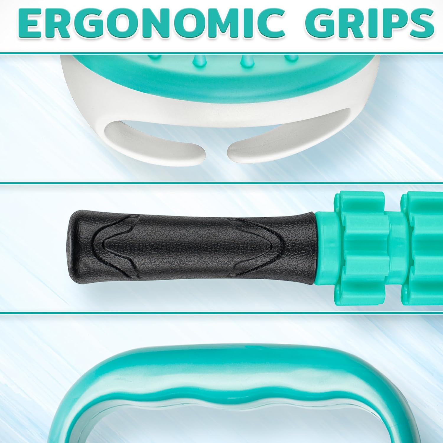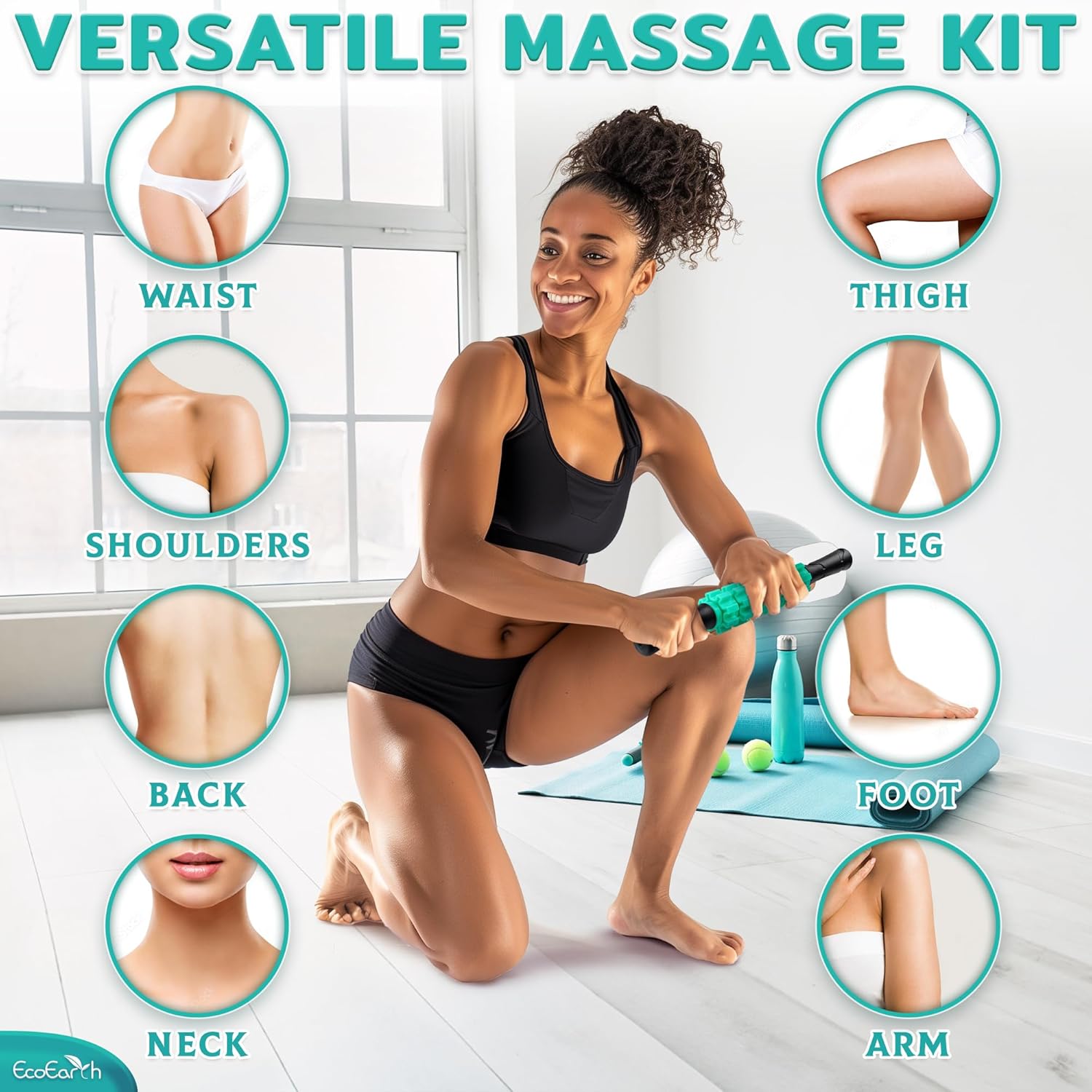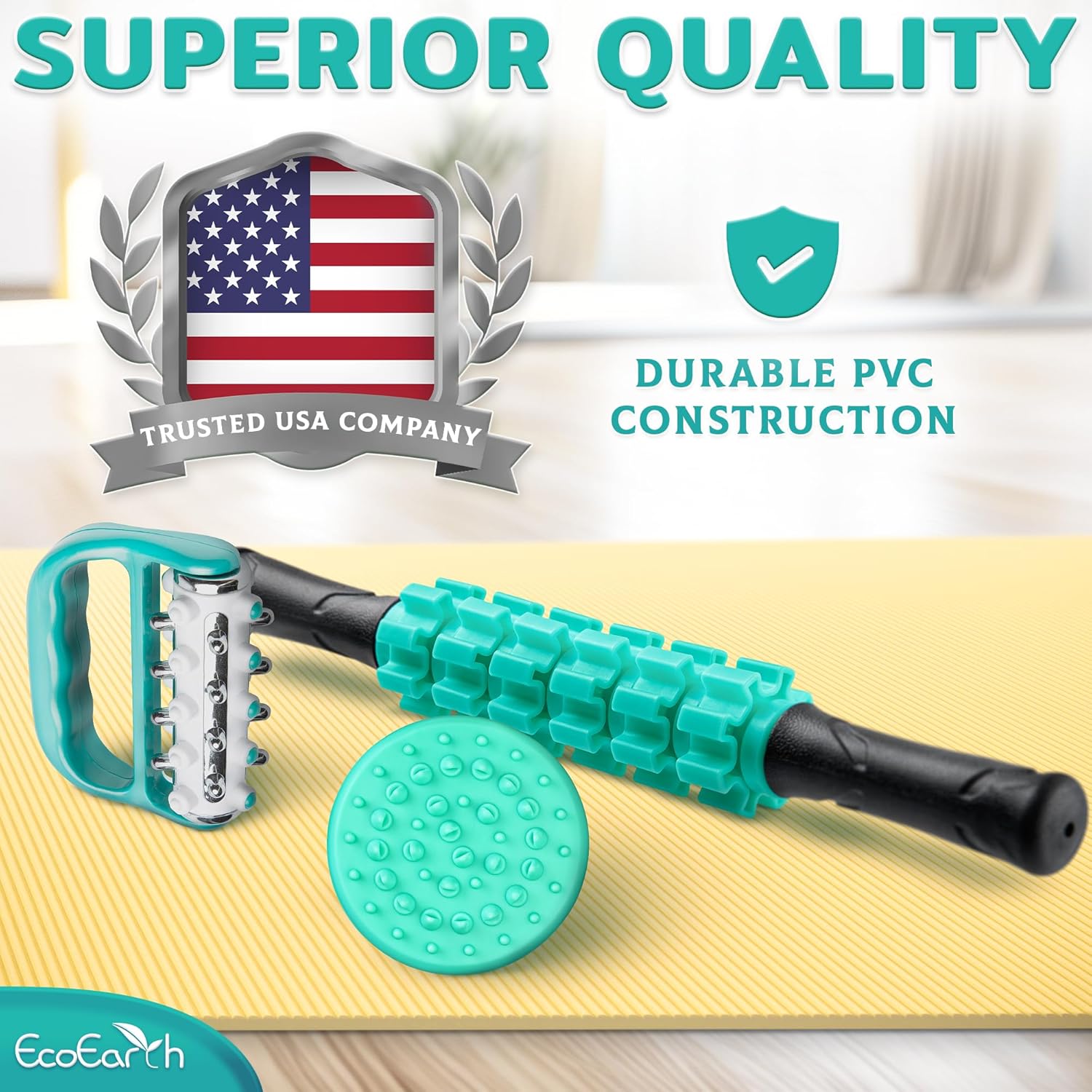 EcoEarth – 3-in-1 Fascia Roller Massage Kit – Includes: Massage Roller Stick, Anti-Cellulite Massage Scrubber & Handheld Massager – Trigger Point Massagers for Myofascial Release & Quick Recovery