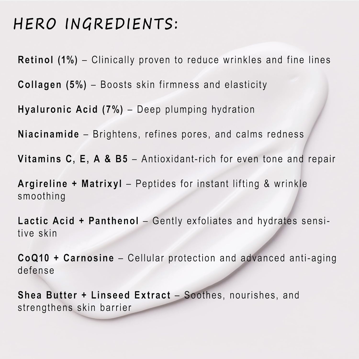 Same collagen. Same retinol. Same glow. Just without the markup. This formula gives your skin everything it needs—without draining your wallet..