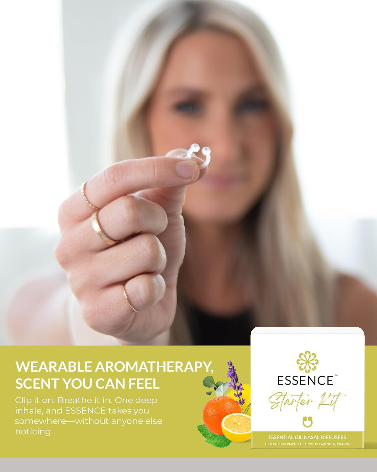 Essence Nasal Diffuser Starter Kit – Essential Oil Silicone Nose Ring Inhalers for Beginners – Wearable Aromatherapy Bundle for Relaxation, Energy & Breathing Support