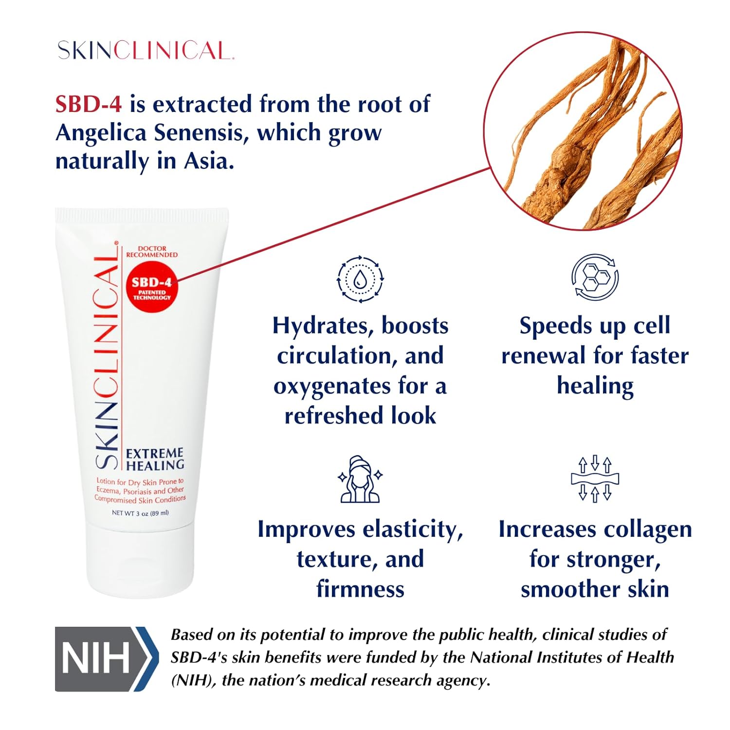 Extreme Healing, Non-Sticky, Fast-Absorbing Lotion For Dry Skin with Eczema and Psoriasis, Fragrance Free Lotion with Patented Ingredient SBD-4, Soothing Relief for Hand and Body, 3 Oz
