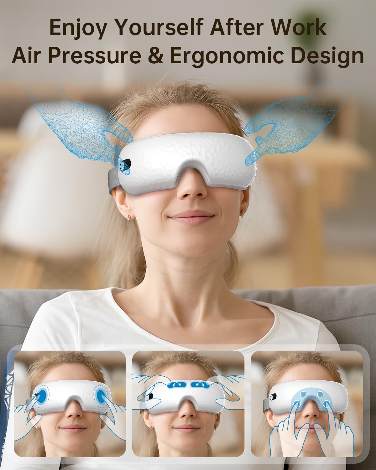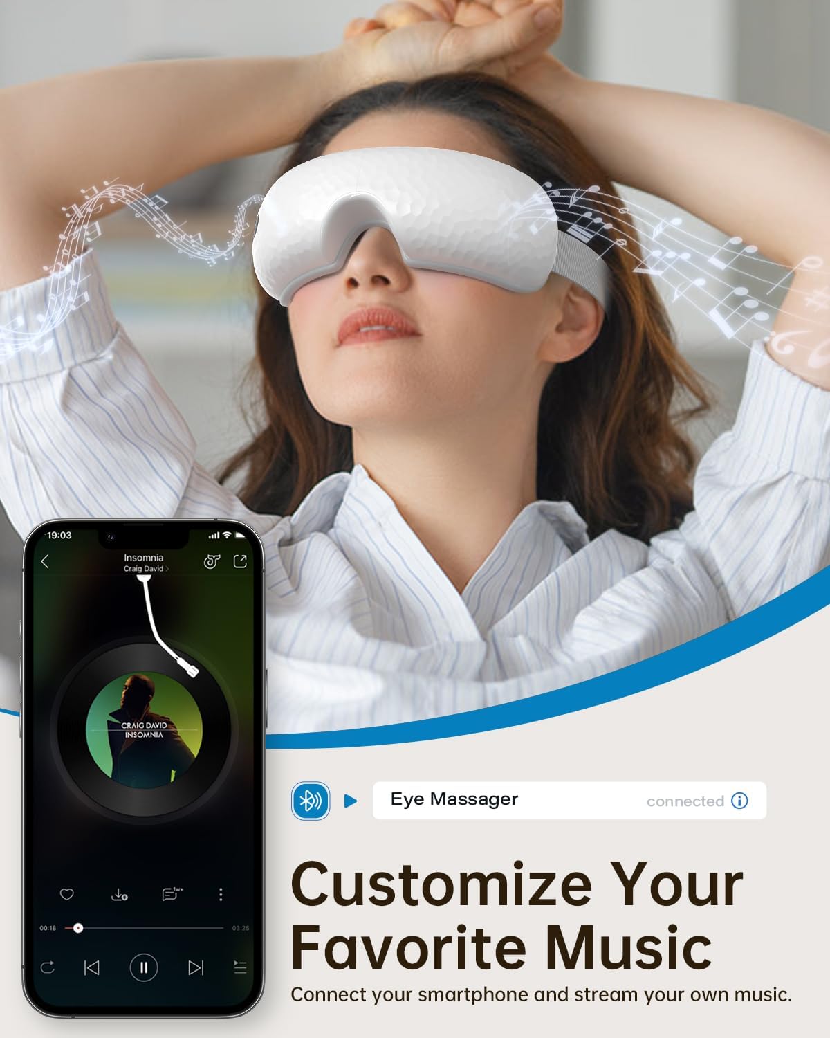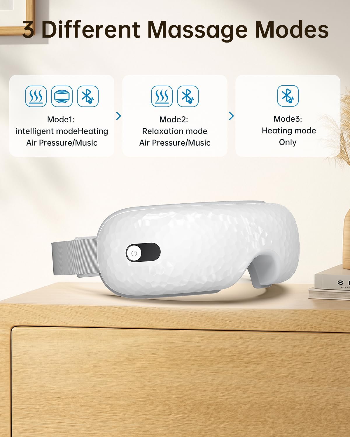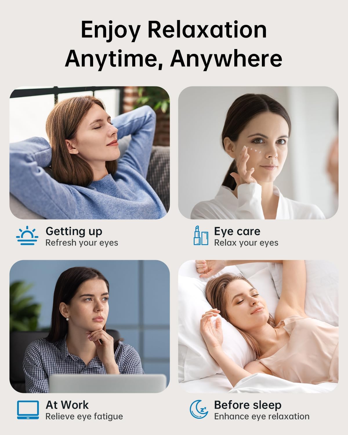 [Listen to Music]: Eye massager with heat is equipped with Bluetooth-compatible music function, built-in speakers and a variety of preset sound effects.You can play your favorite music list through Bluetooth-compatible connection and enjoy the care time easily