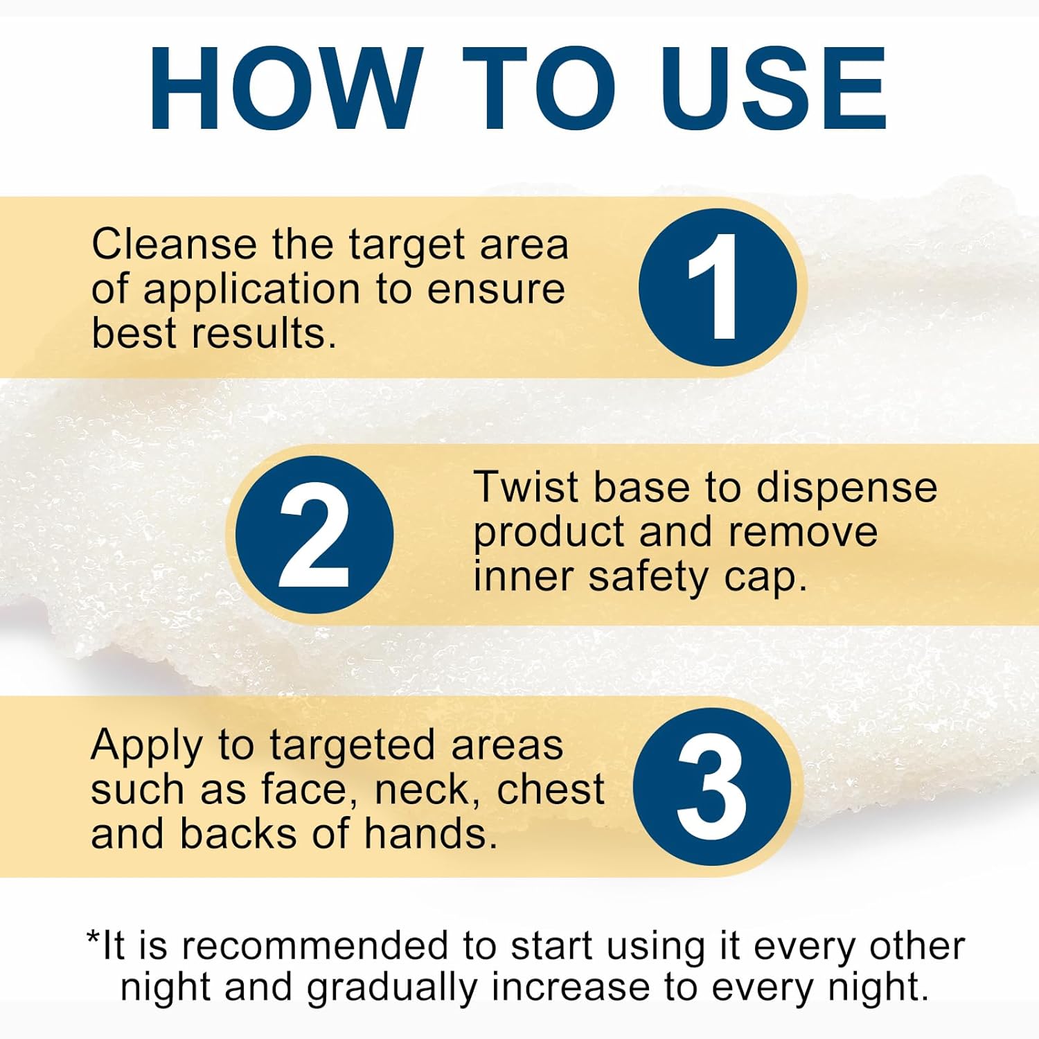 💧 【Easy to Absorb & Apply】This Retinol Firming Serum Stick is free of harsh chemicals and is gentle, non-greasy, easy to absorb and apply and suitable for all skin types. After daily cleansing, apply the retinol stick directly to your face or your desired skincare area. It is recommended to use it at night before going to bed and make sure to apply sunscreen when using it during the day.