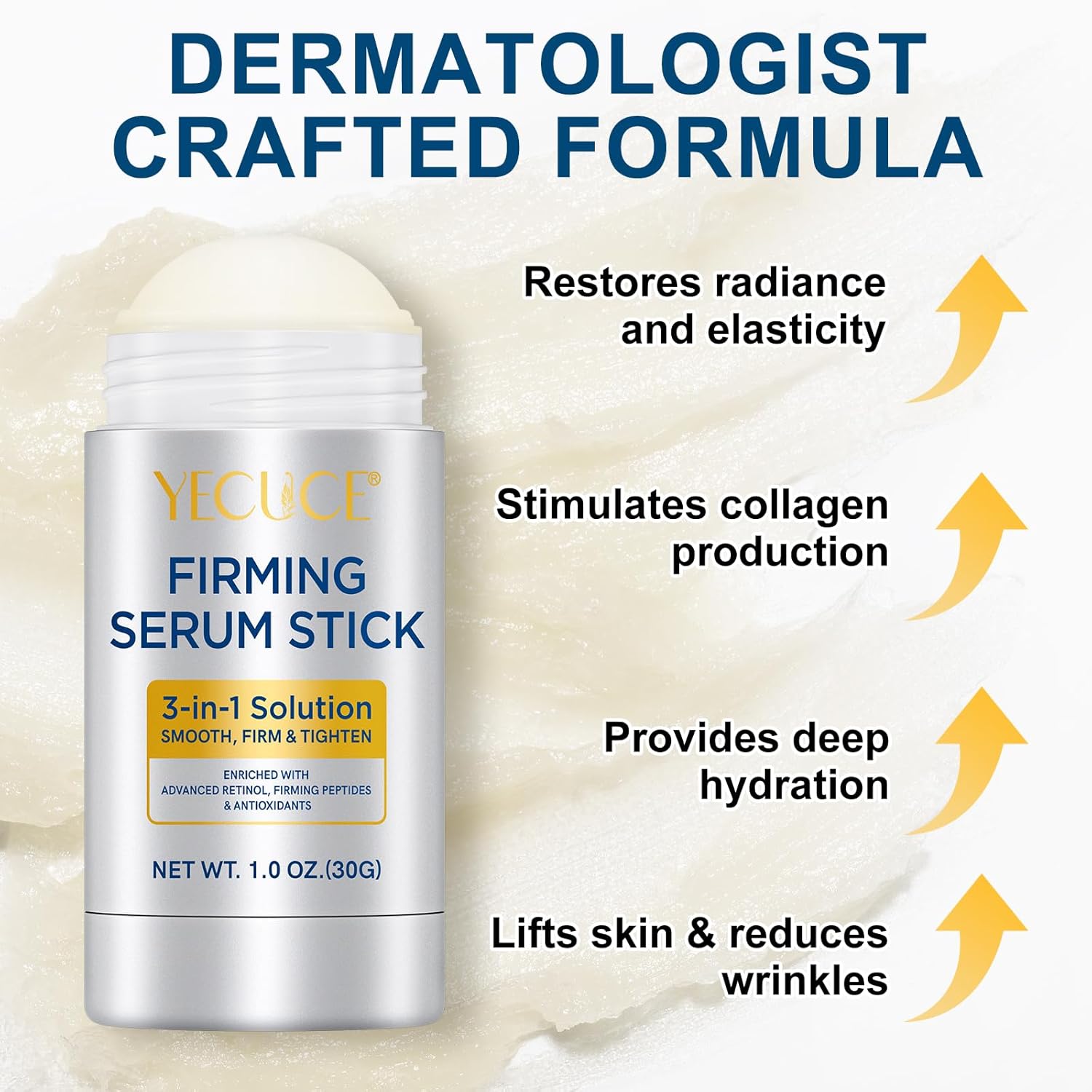 🚀 【Instant & Long-Term Benefits】Firming Serum Stick is a powerful 3-in-1 solution that smooths, firms, and tightens your skin. Infused with advanced retinol, firming peptides, and nourishing antioxidants, this easy-to-use stick helps reduce the appearance of fine lines while promoting a youthful, lifted complexion. 94% of people have visibly firmer skin.
