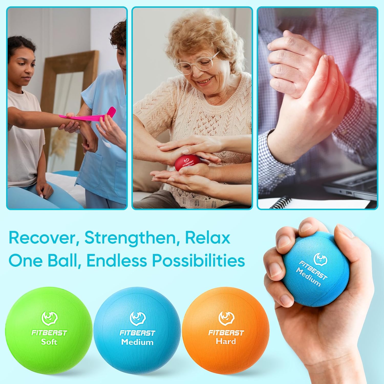 - 🟡 3 Stress Balls (Soft–Hard) – Ideal for rehab, stress relief, and mobility
