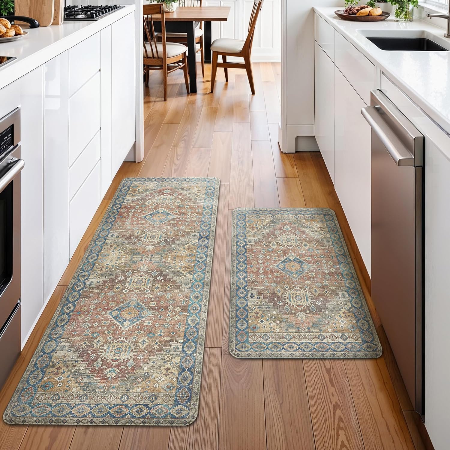 GENIMO Kitchen Mats for Floor, 2PCS Kitchen Rugs Non Slip Washable, Waterproof Anti Fatigue Mat, Comfort Standing Runner Rug for Sink, Office, Laundry, Home, 17.3″x47″+17.3″x30″, RetroBrick