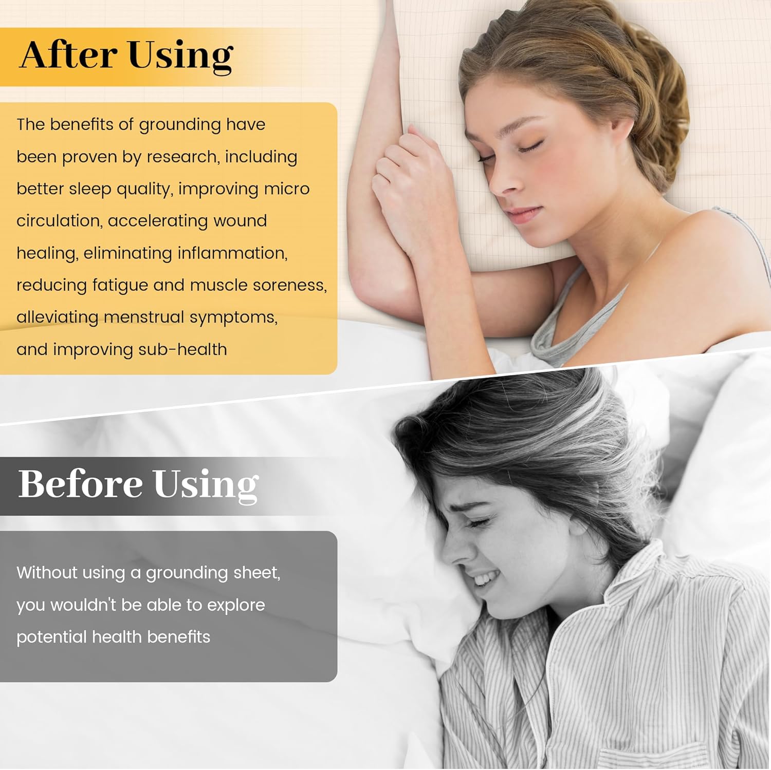 【Grounded Connection】: The grounding sheet is covered with silver threads, which are conductive. When a wire is used to connect the sheets to the grounding socket, the sheet can neutralize the free radicals of the human body, enhance the body’s resistance, Scientists have shown that grounding has great benefits for people’s health.