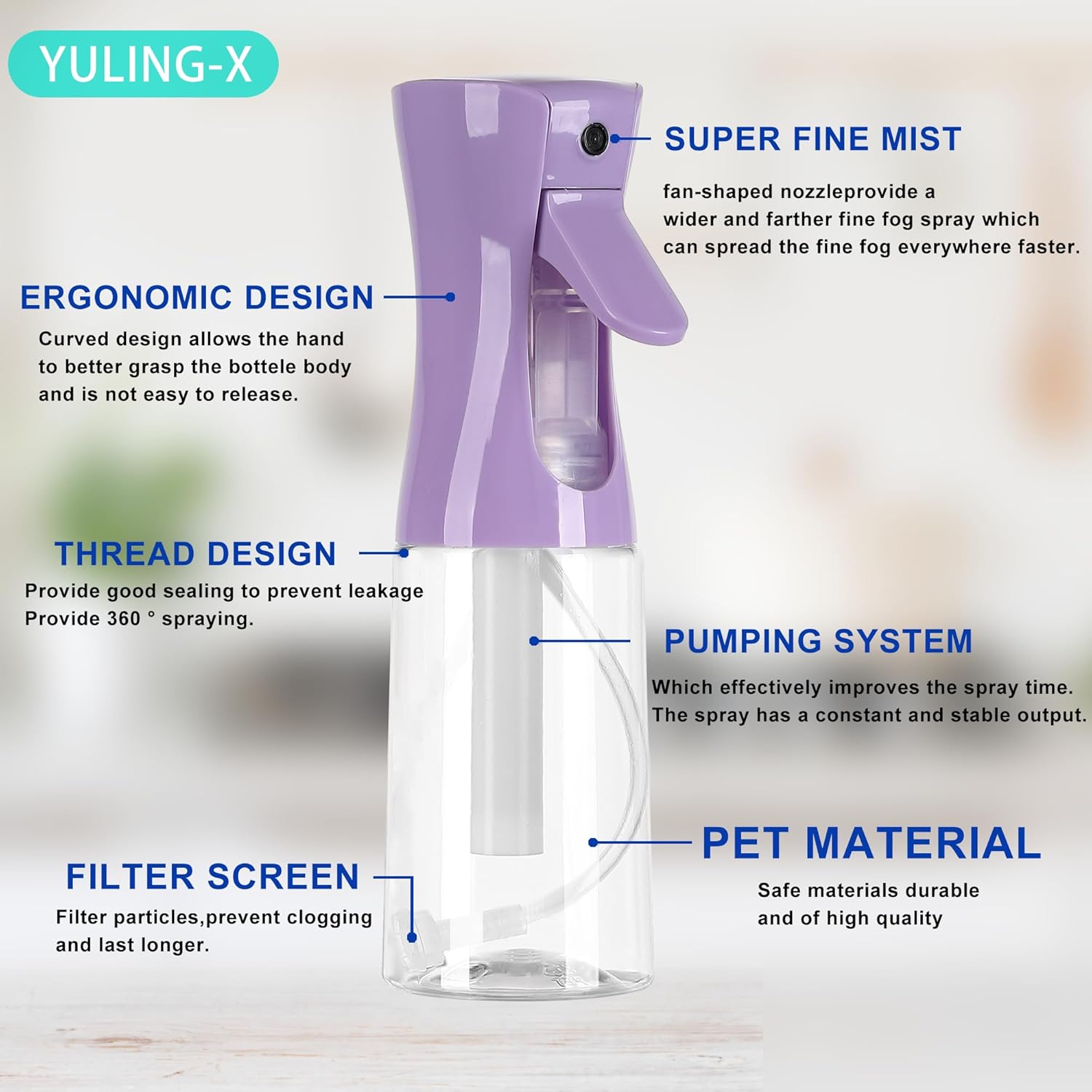 hair spray bottle, ultra-fine spray continuous spray bottle (200ml/6.8oz), used for hair design, vegetation, cleaning and skin care – empty, reusable (Purple)