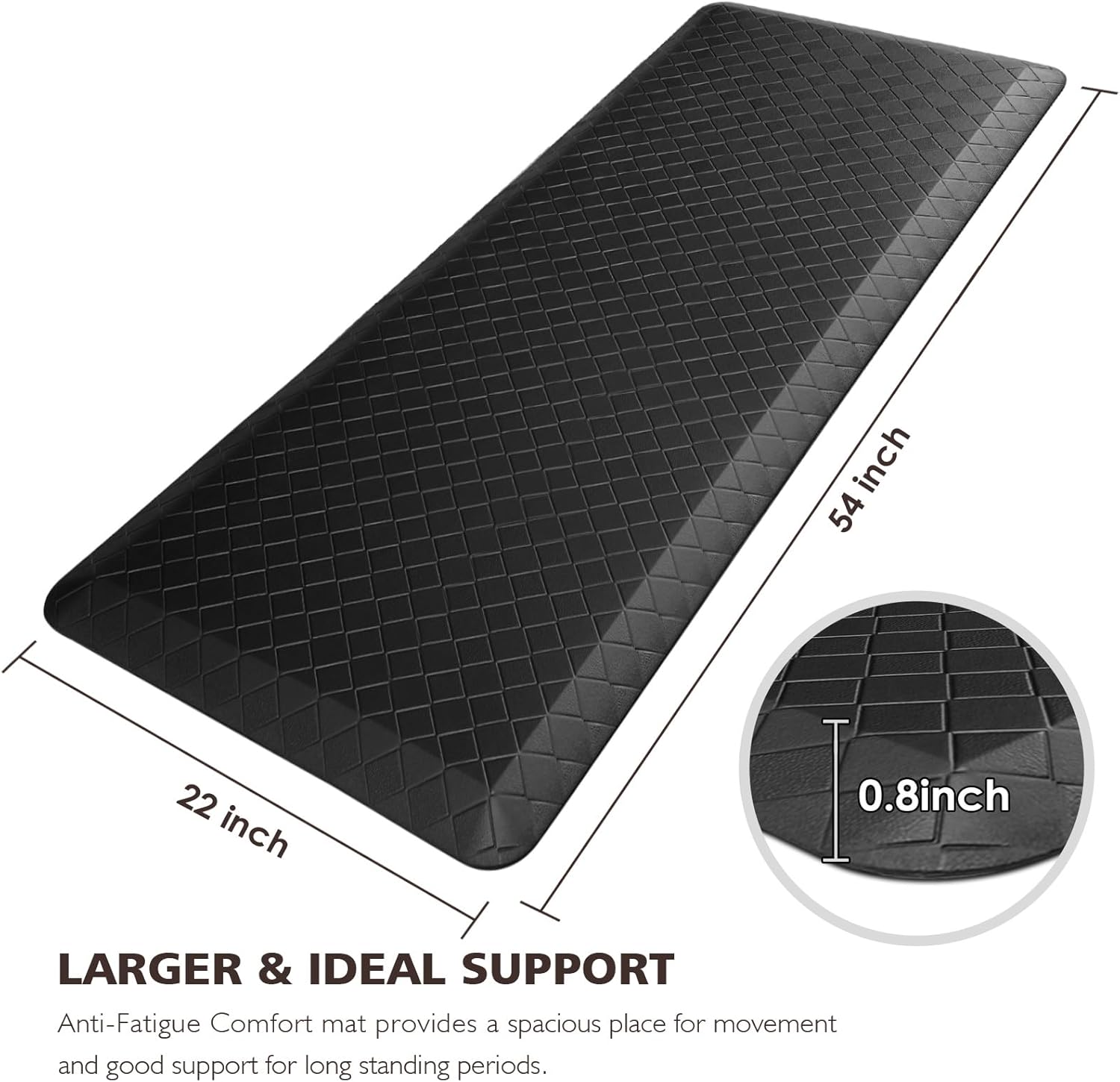 HappyTrends Kitchen Floor Mat – 4/5 Inch Thick Anti-Fatigue Kitchen Rug,Waterproof Non-Slip Kitchen Mats and Rugs Heavy Duty Ergonomic Comfort Rug for Kitchen,Office,Sink,Laundry,(22″x54″, Black)