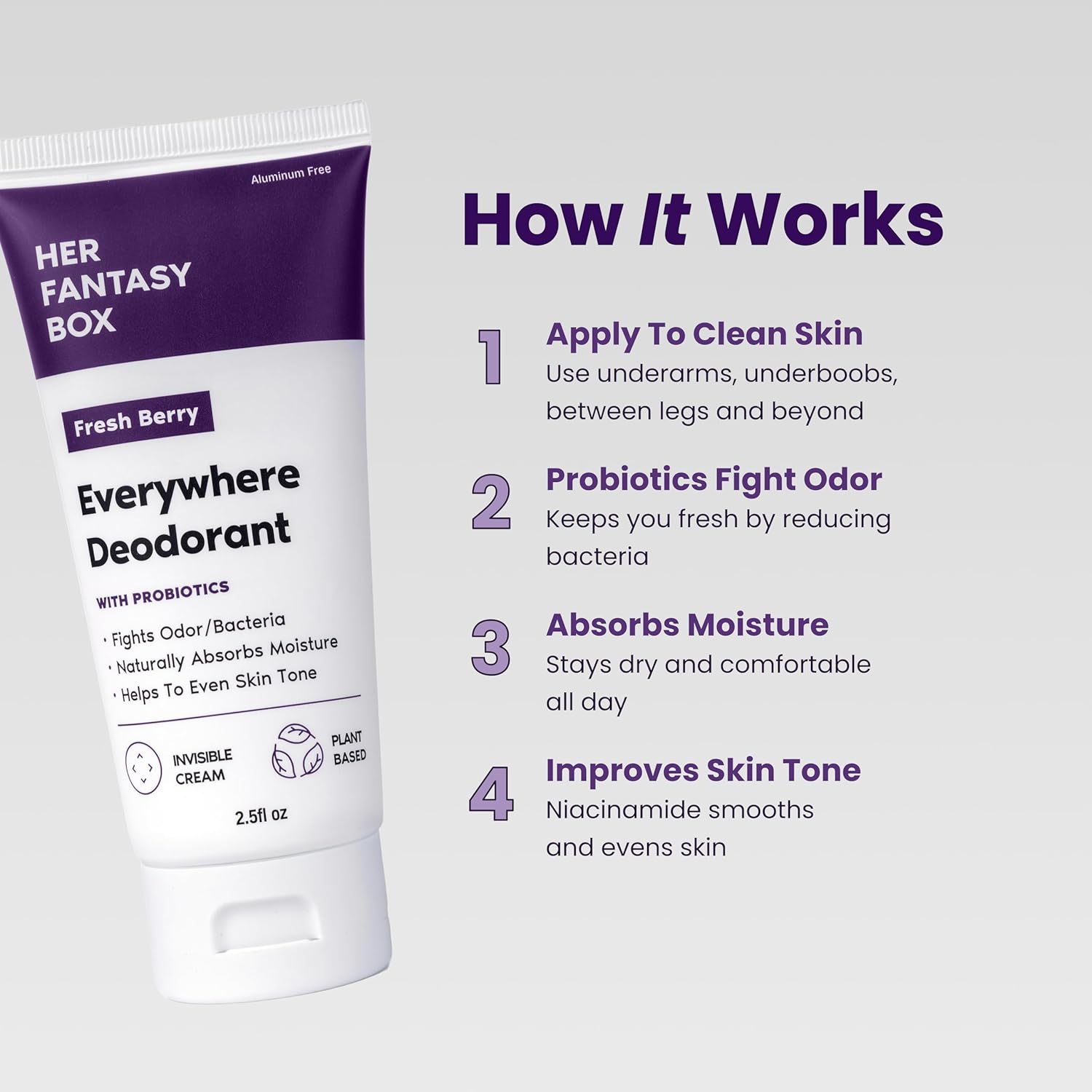 Her Fantasy Box | Everywhere Deodorant with Probiotics – Berry Scent | Aluminum-Free, Naturally Absorbs Moisture | Fights Odor & Bacteria | Skin-Improving Formula