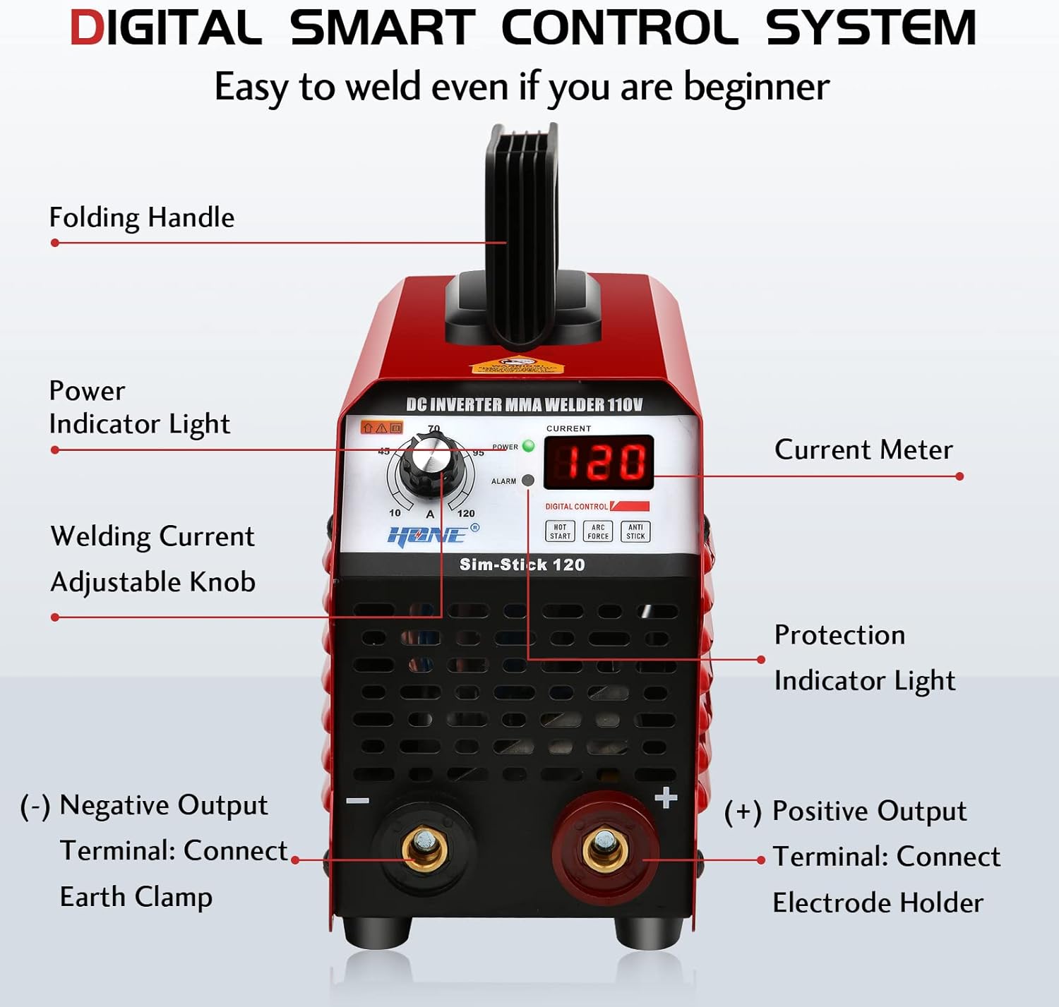 HONE Stick Welder 110V, Actual 120Amp Smart Hot Start Arc Force Anti-Stick Mini Portable Welding Machine, Digital IGBT Inverter LCD Display ARC Welder, High Efficiency for Welding Rod 1/16-1/8-Inch