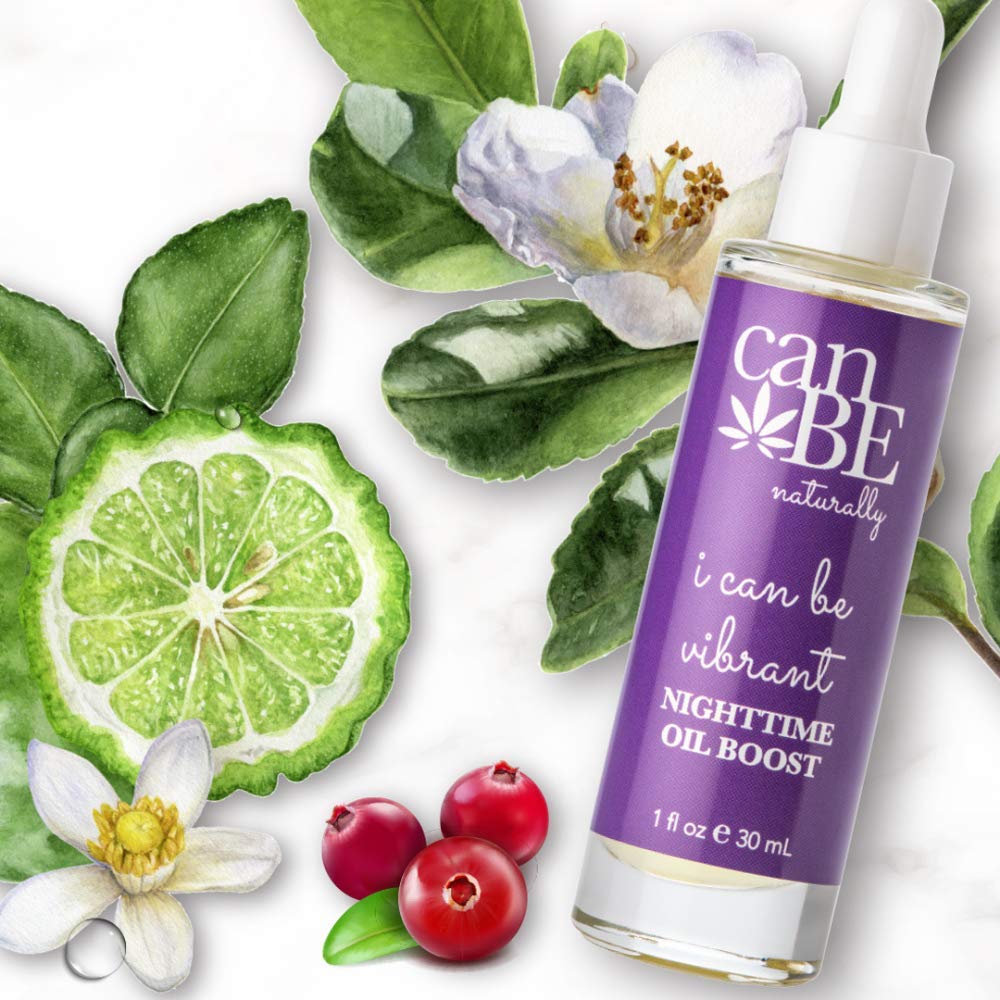 i can be vibrant NIGHTTIME OIL BOOST will balance and replenish your skin with a proven blend of hemp seed and organic plant oils like cranberry, rose hip and argan to hydrate and protect; antioxidants and anti-aging properties of cranberry, pomegranate and grape seed and the oil-balancing, antibacterial and soothing power of Bergamot and Melissa officinalis (lemon balm). This amazing oil will rebuild your skin’s acid mantle and help calm and soothe inflammation while you sleep.