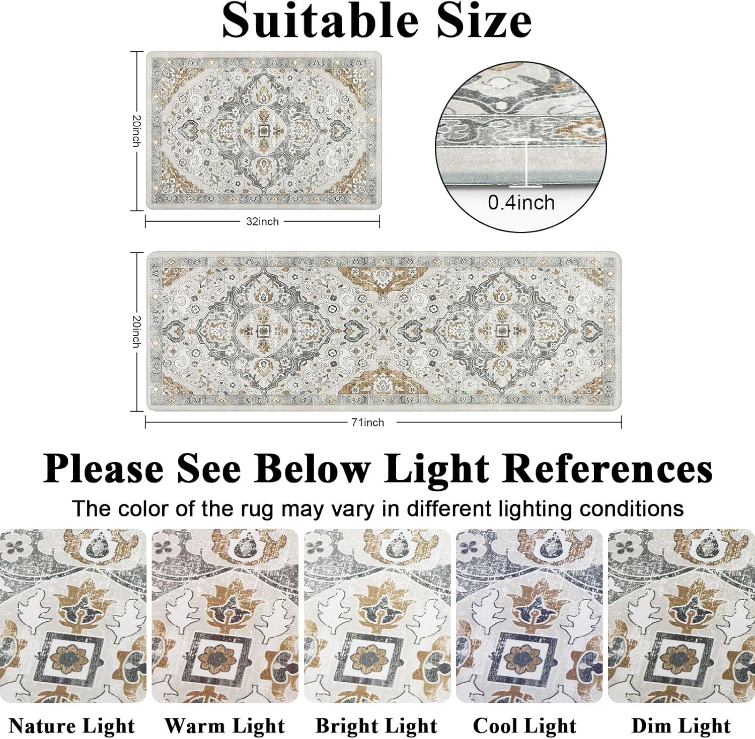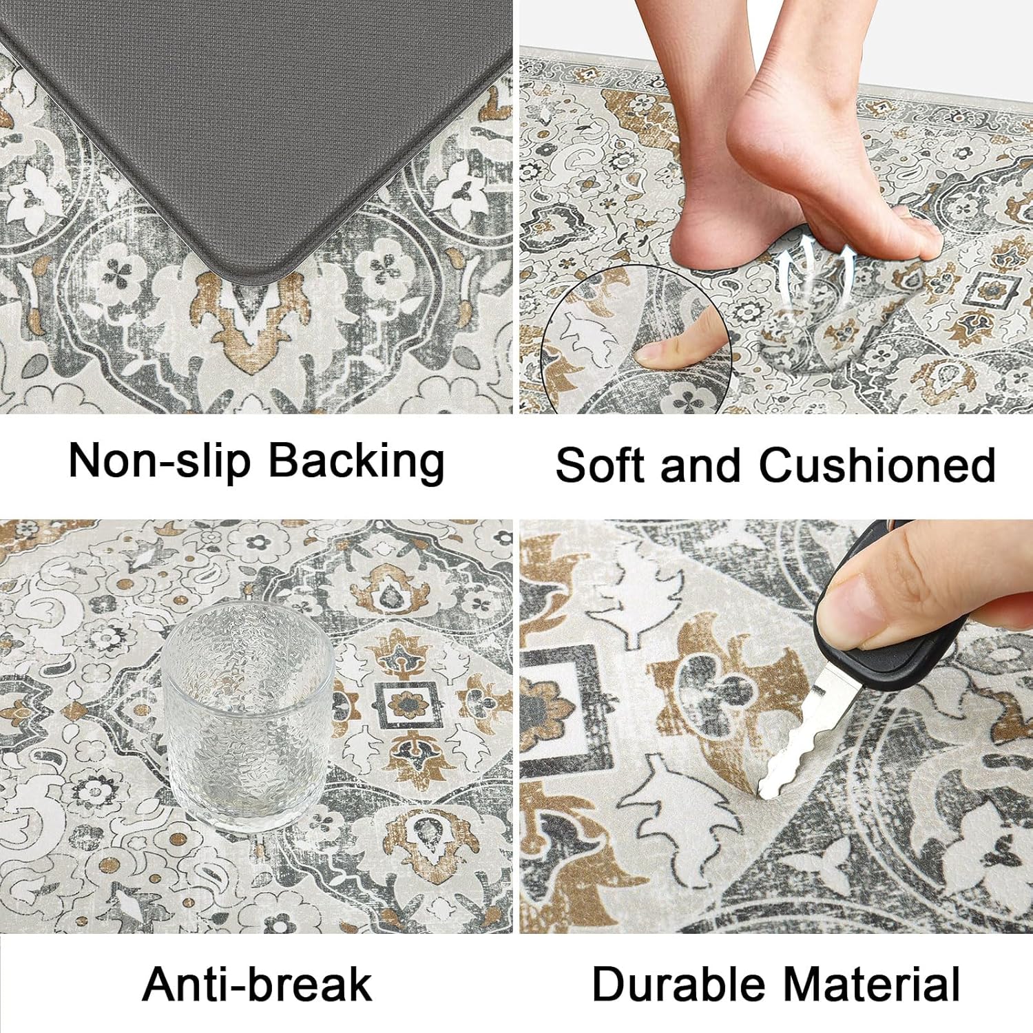 Boho Kitchen Rug Set Anti Fatigue: Meticulously crafted with a focus on quality, anti fatigue mats for kitchen floor skillfully intertwines modern, classic, boho styles within designs, elegantly embodying the sophistication and charm of vintage aesthetics, creating a captivating visual experience that enhances any space for home decor