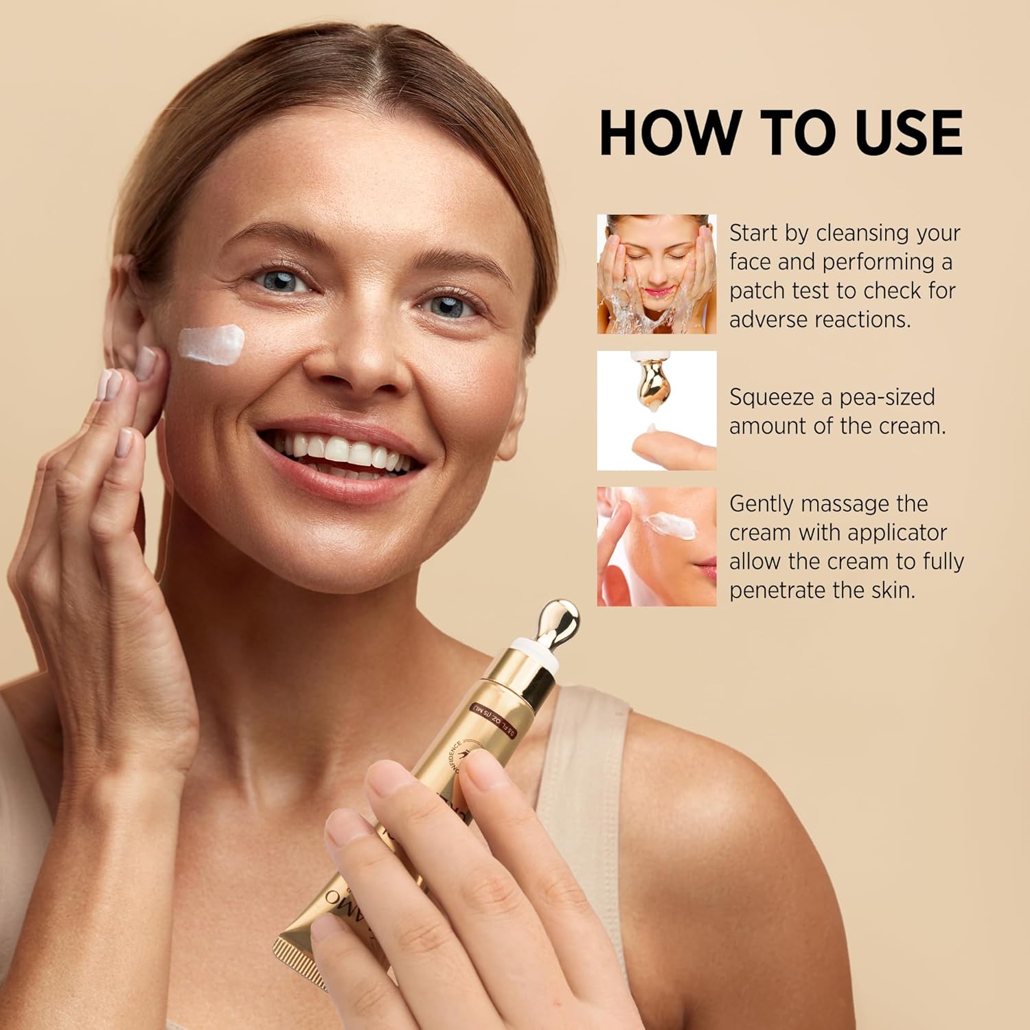 Customers find this eye cream effective, reporting significant improvements in dark circles, puffiness, and wrinkles, with dark circles lightening considerably and bags disappearing. They appreciate its moisturizing properties, noting it doesn’t dry the skin, and find it easy to apply with a smooth texture that feels soft on the skin. Customers report their eyes look better every day, with one customer specifically mentioning improved under-eye smoothness.