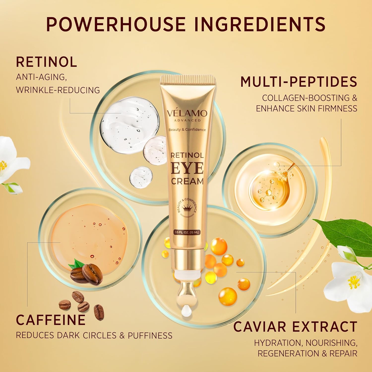 🥇Long Lasting Eye Cream Anti Aging – VELAMO ADVANCED rapid reduction RetInol Eye Cream anti aging, face lift shows that instant results can last for up to 10 hours. Apply the wrinkle remov cream for face, instant anti aging cream to clean and dry skin to visibly reduce dark circles, under eye bags, wrinkles, puffiness, and fine lines. The right amount of cream, no facial expressions during application are key tips.