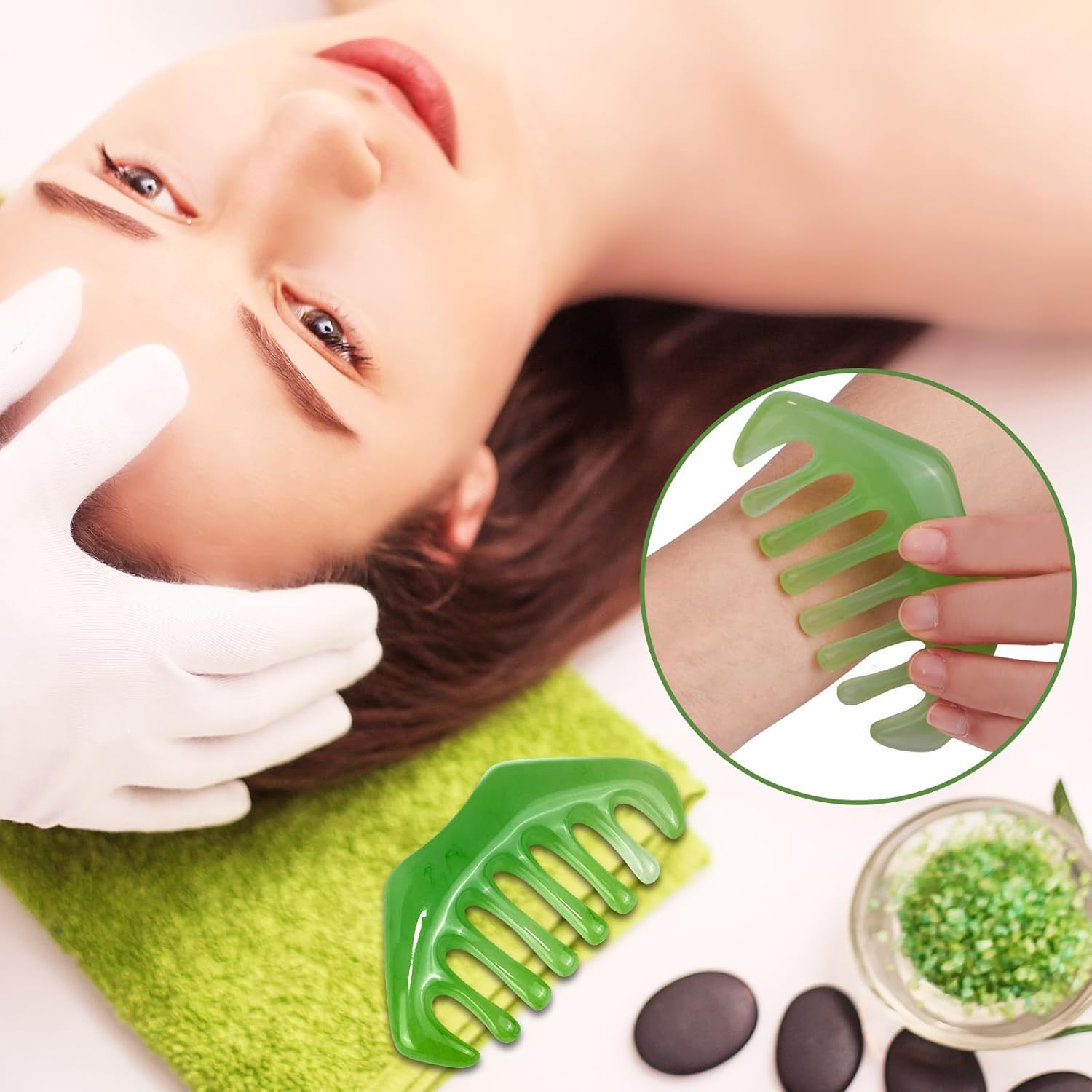 Multi-purpose massage: The jade comb can effectively act on various surface parts of the body, such as the head, neck, hands, feet, back, etc. Combing and scraping massage can also improve microcirculation and relieve pain such as frozen shoulder and migraine. This method can help relieve stress, fatigue, exhaustion, and better relax the whole body