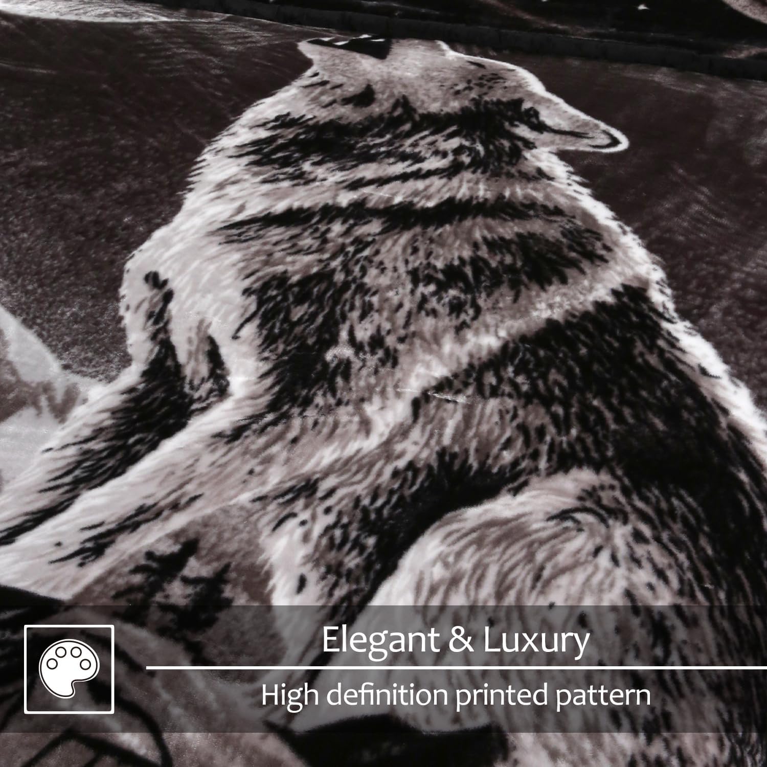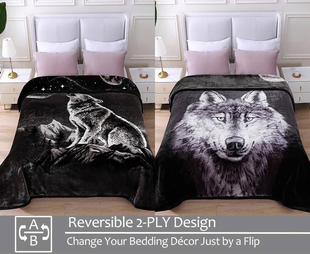 JYK Soft Blanket Korean Mink Blanket, 5 LB Fleece Blanket Queen 75” x 87” – 2 Ply Reversible 520GSM Super Soft Plush Flannel Blanket, Thick, Warm Bed Blanket for Autumn Winter – Moon Wolf/Wolf