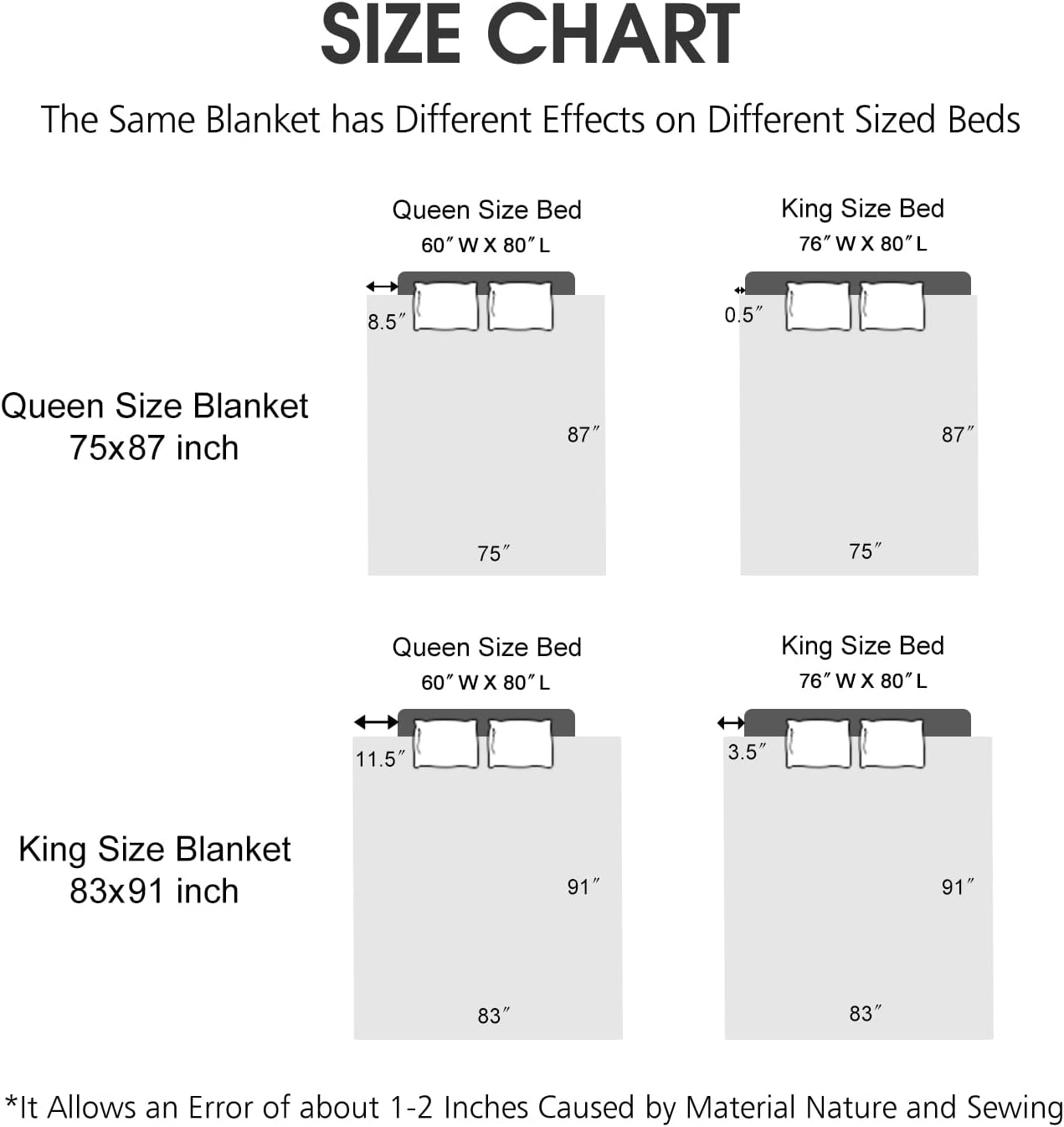 Kindly Note: This is a Korean style blanket. All sizes are designed by standard Asia size, which is smaller than the US standard size. If you want to enjoy an oversize style blankets, please check our dimensions carefully or select a bigger size than your actual bed size. Thank you.