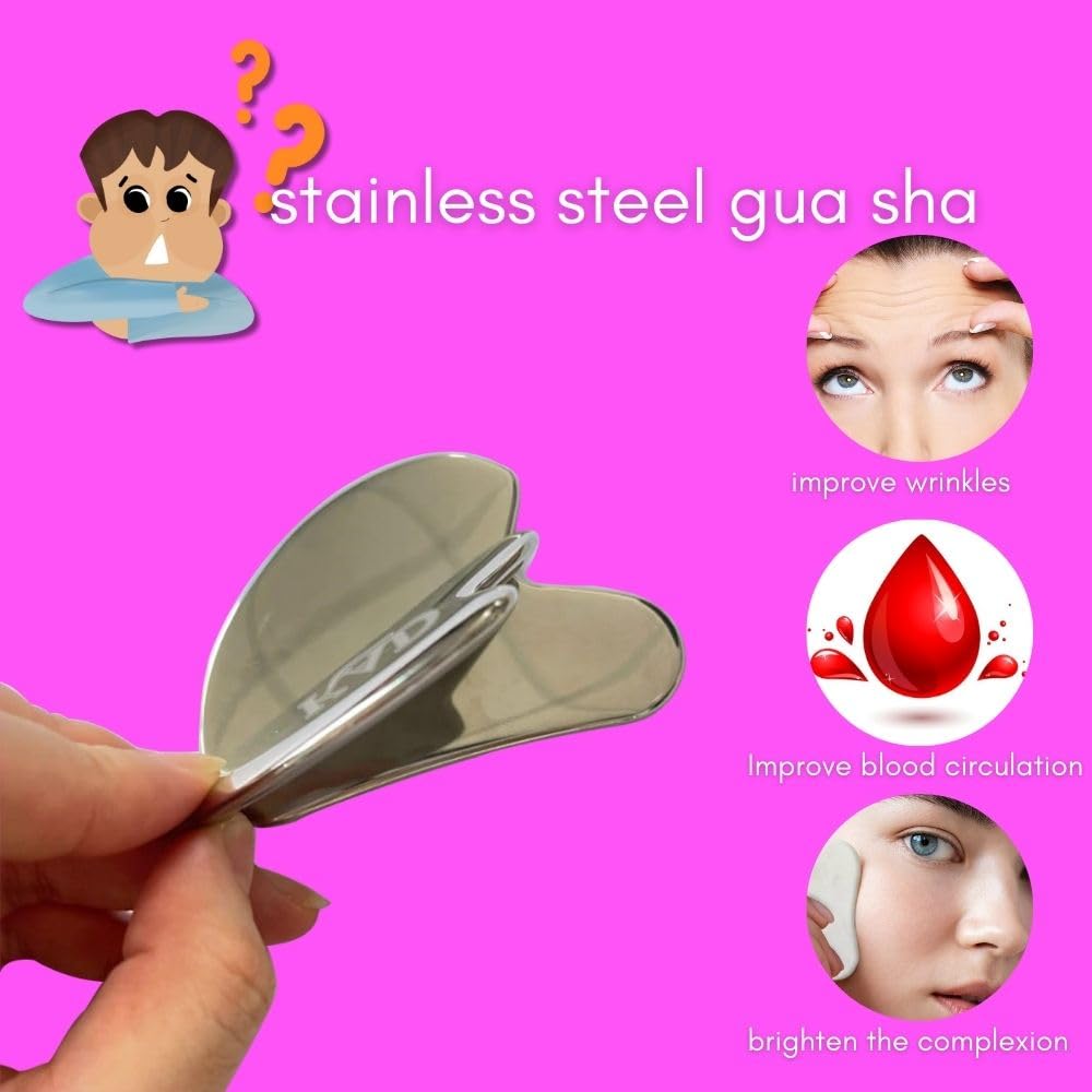 💎 Premium Stainless Steel Gua Sha – Durable & Hygienic Design : Crafted from high-quality stainless steel, this Stainless Steel gua sha tool is rust-resistant, non-porous, and built to last—perfect for professionals or at-home skincare routines.