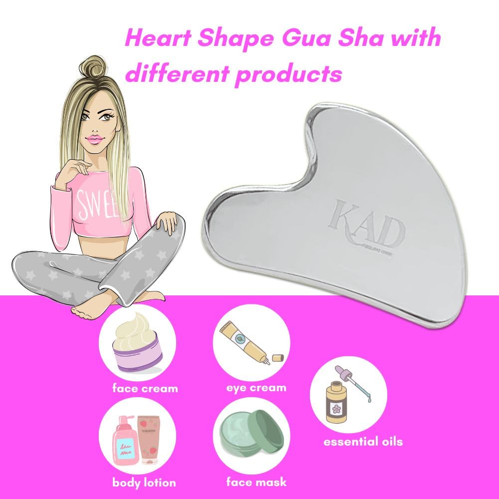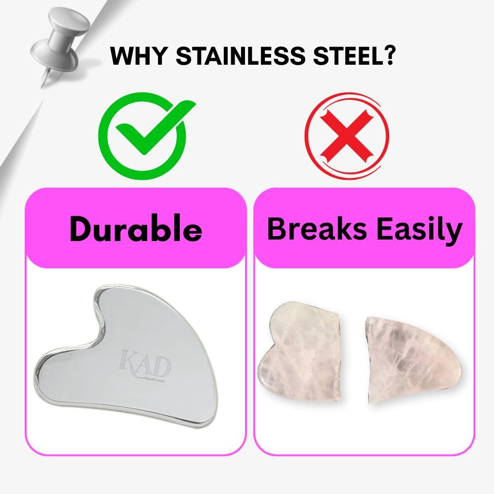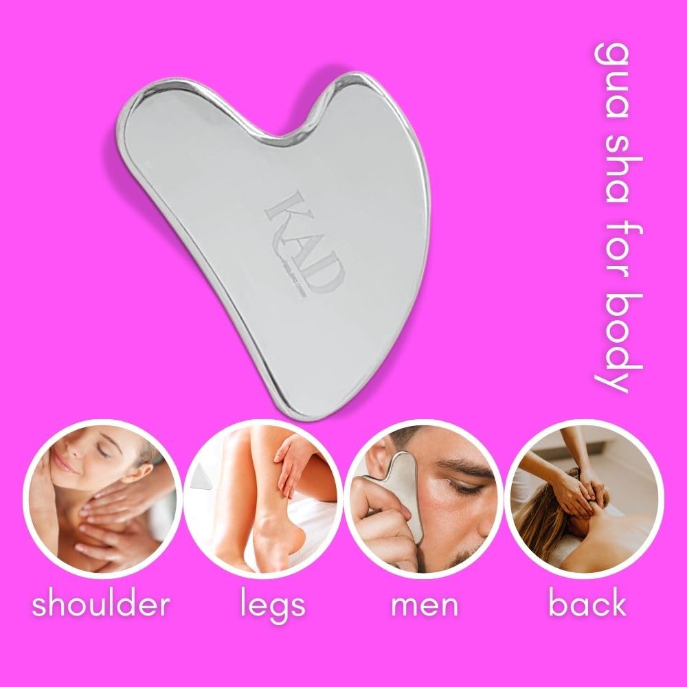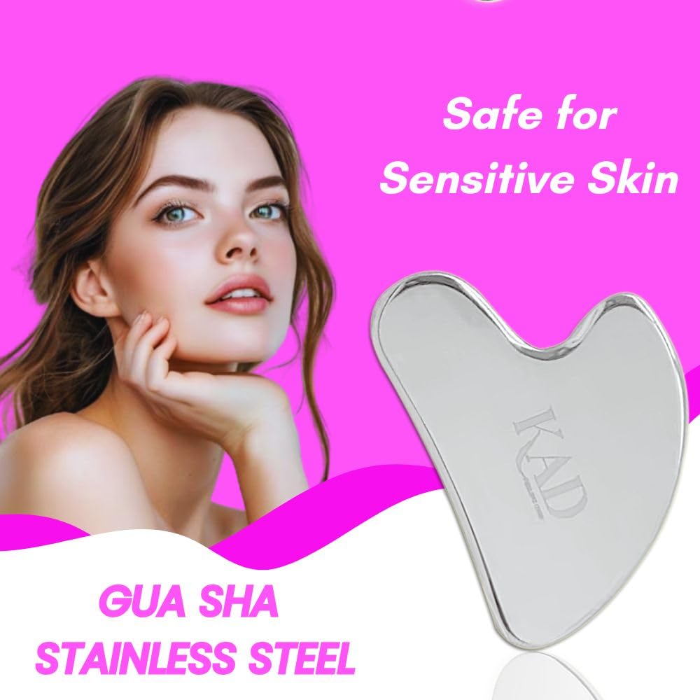 KAD Germany 💖 Elevate your skincare and wellness routine with this premium stainless steel Gua Sha facial tool, expertly designed to promote healthy skin, relieve muscle tension, and enhance your natural glow. Made from 100% medical-grade material, this metal Gua Sha offers unmatched durability, hygiene, and long-lasting performance—making it the perfect addition to your daily beauty ritual. Unlike traditional stone tools, the Gua Sha stainless steel design stays naturally cool to the touch, offering immediate relief from puffiness, inflammation, and facial fatigue. Whether you’re sculpting cheekbones, defining your jawline, or easing tension in the neck and shoulders, this metal Gua Sha delivers professional-level results at home. The smooth, non-porous surface of the stainless steel Gua Sha ensures it’s easy to clean and safe for all skin types, including sensitive skin. This tool helps boost blood circulation, encourage lymphatic drainage, and improve product absorption—giving your skin a firmer, more radiant look over time. Ideal for use on the face and body, this versatile metal Gua Sha tool works wonders when used with facial oils, serums, or moisturizers. It also serves as a relaxing self-massage tool, promoting stress relief and tension release throughout the body. Whether you’re new to Gua Sha stainless steel or upgrading from traditional stone, this is the go-to tool for modern skincare. Perfect for personal use or gifting, this stainless steel Gua Sha is an excellent choice for both women and men who value self-care and wellness. Compact, travel-friendly, and built to last, this metal Gua Sha is more than just a beauty tool—it’s a lifestyle upgrade. Choose the best in performance and purity. Choose a Gua Sha stainless steel tool that blends timeless tradition with modern design. Experience the difference with a stainless steel Gua Sha that works as hard as you do.