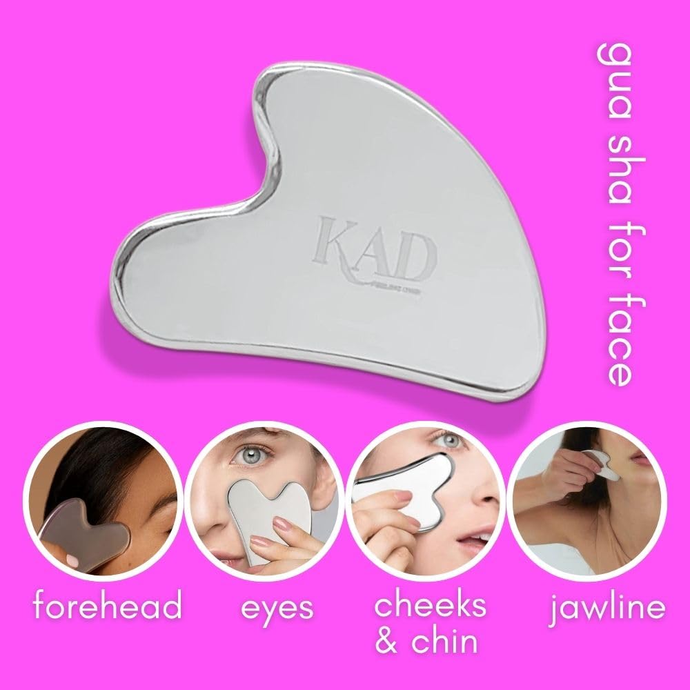 KAD Stainless Steel Gua Sha Facial Tools Metal Gua Sha for Face & Body (Silver)