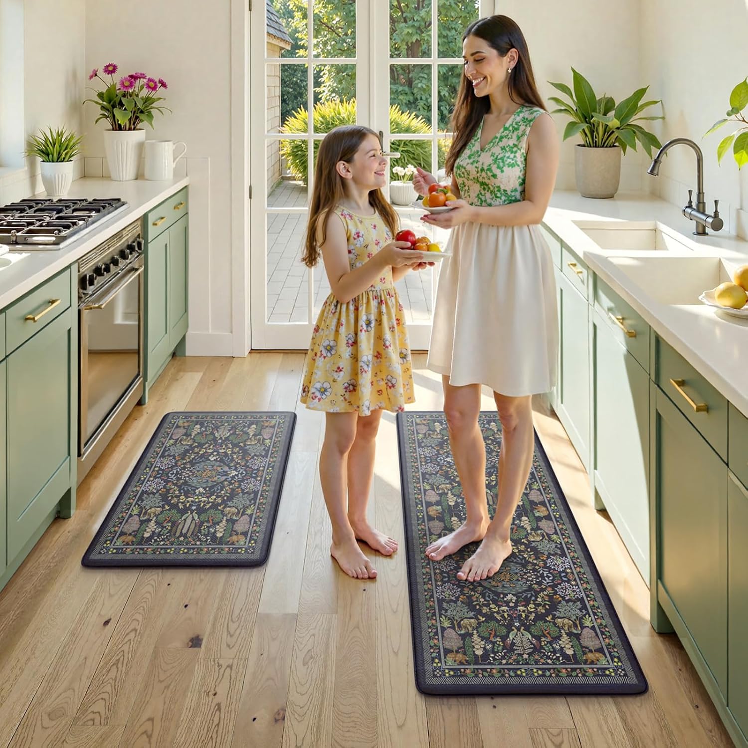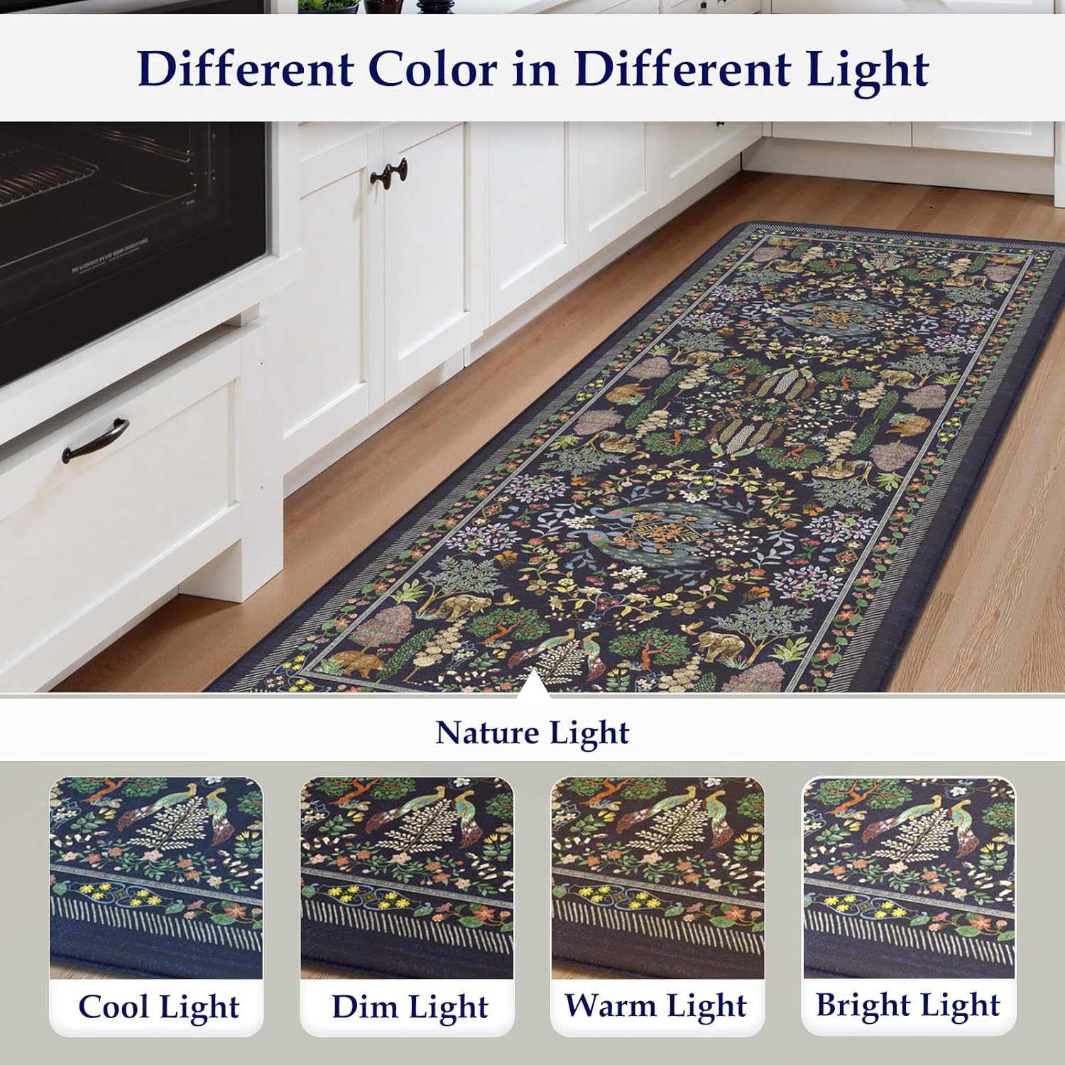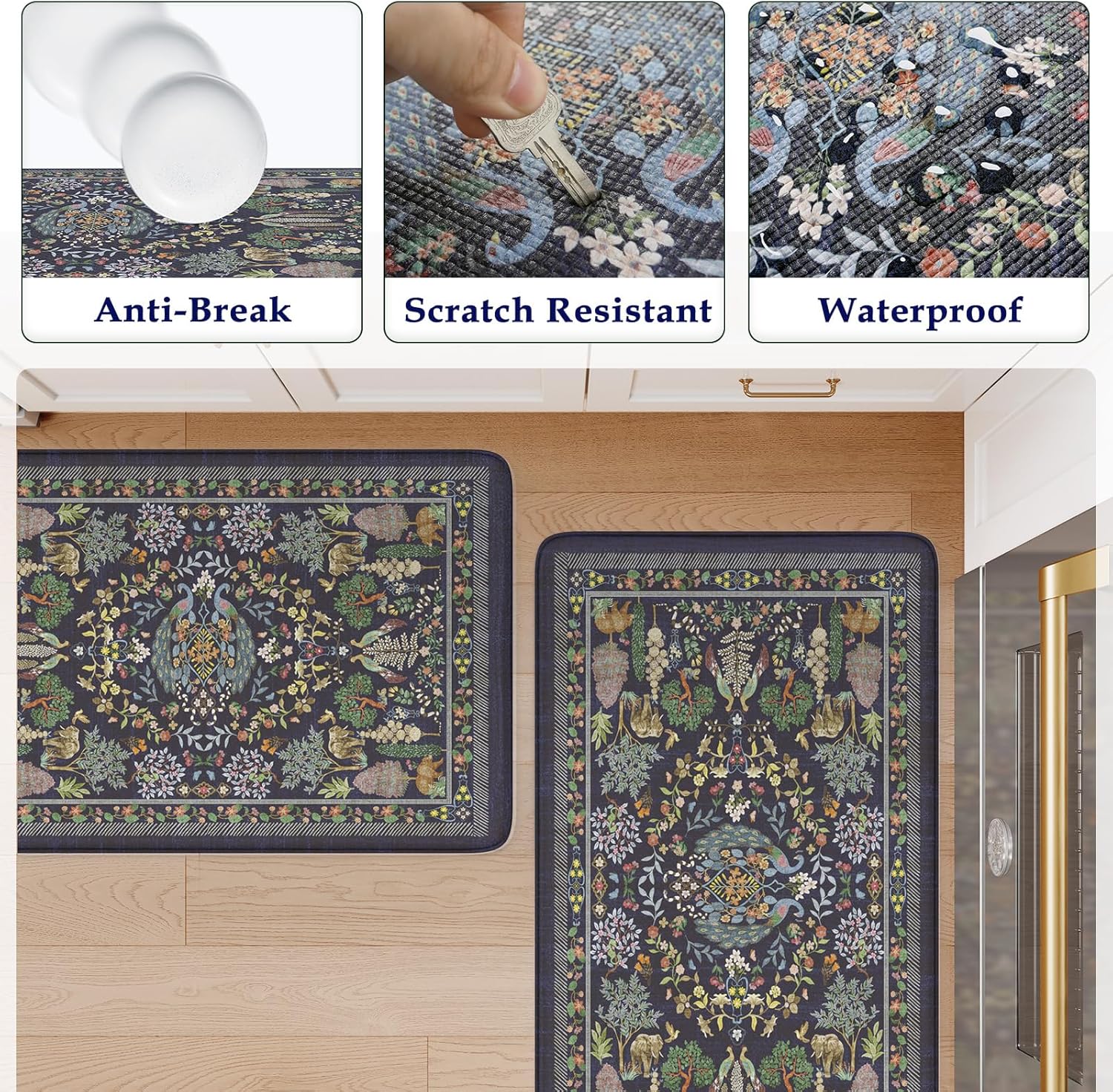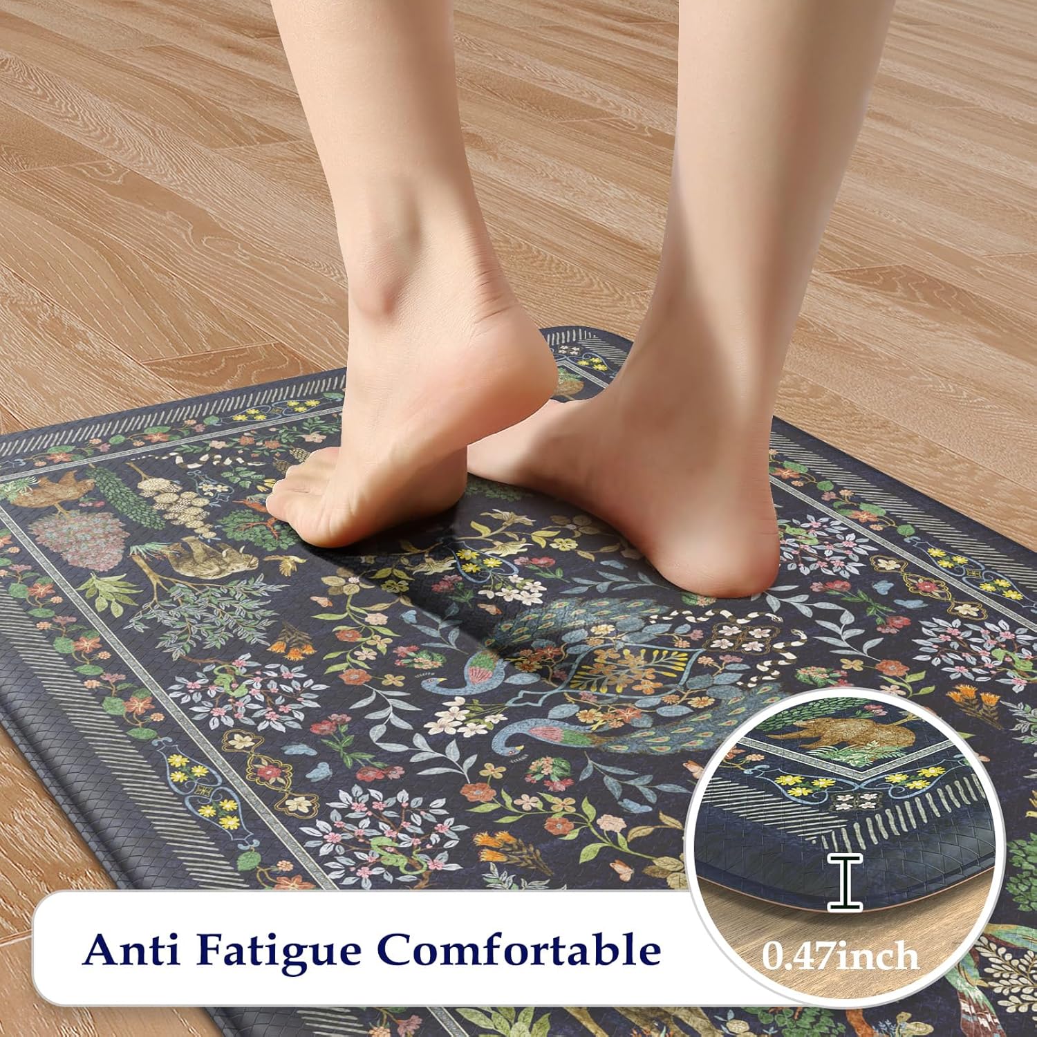 Versatile:Vibrant floral style kitchen rug with animal and plant patterns easily to match your kitchen decor, bright your home.Soft thick foam provides ample support for standing in kitchen sink, laundry room, office, bathroom, dinning room, or any other high-traffic area