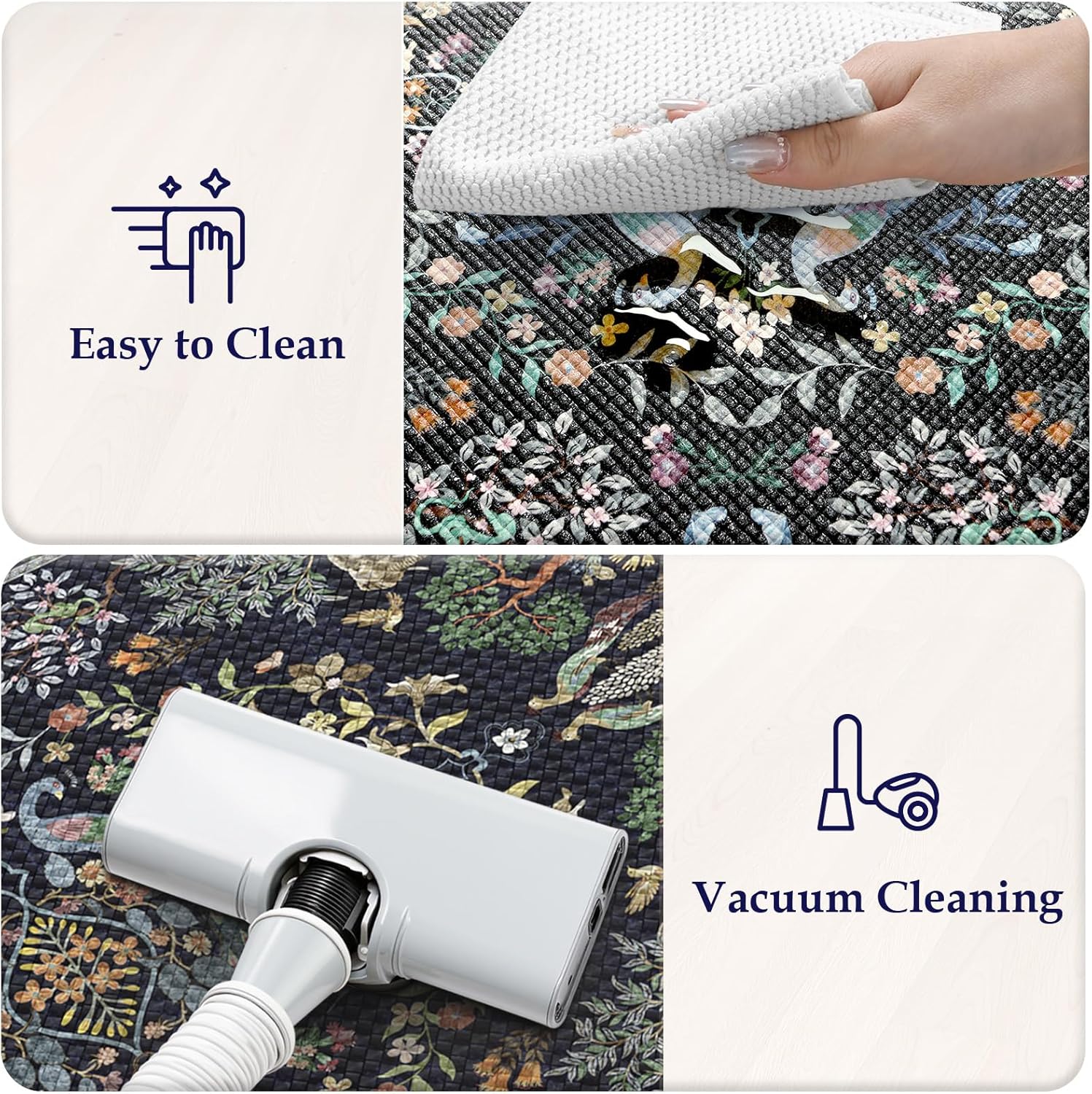 Make cleaning more convenient,when your kitchen rugs are stained,you just need a wet cloth to wipe out down! Spills are wiped off nicely.