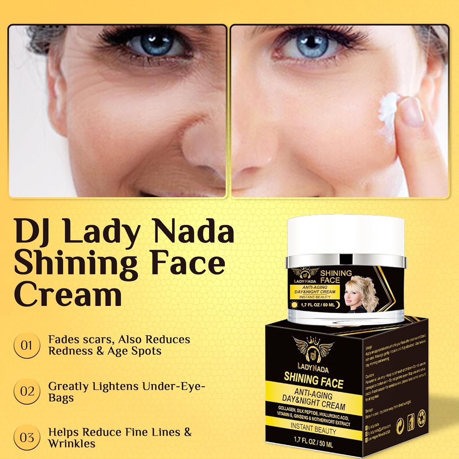 Includes: 1 × DJ LADY NADA Anti-Aging & Hydrating Face Cream (1.7 Fl oz)
