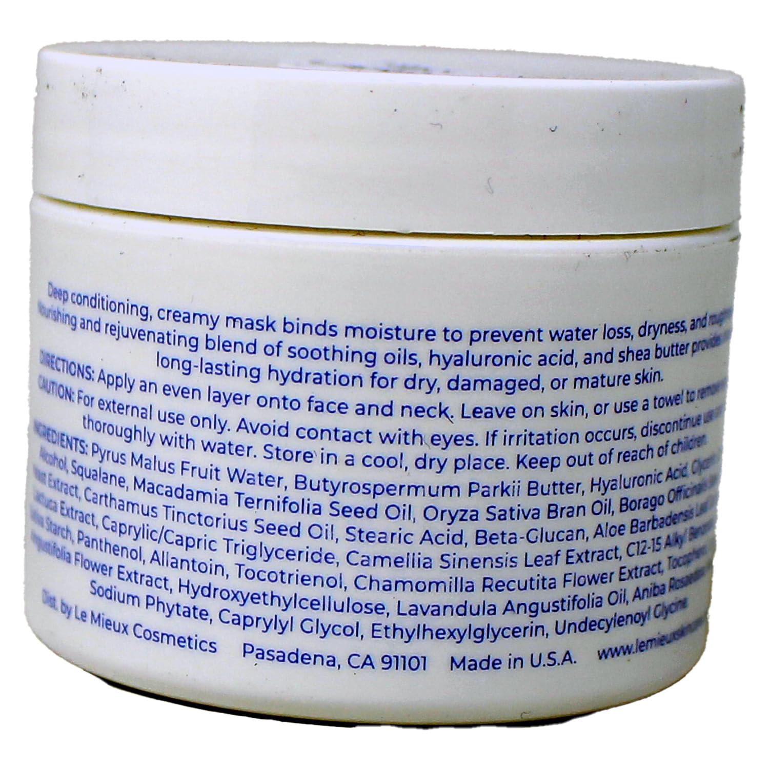 Deep conditioning, creamy mask binds moisture to prevent water loss, dryness, and roughness. Nourishing and rejuvenating blend of soothing oils, botanical extracts, hyaluronic acid, and shea butter provides intensive, long-lasting hydration for dry, damaged, or mature skin.*