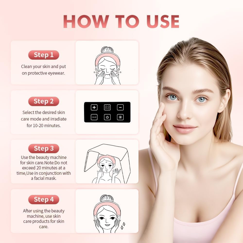 IT WORKS: Customize your skin care regimen with simple settings for adjusting the LED light use and working time. Use the light therapy for face 2-3 times one week for 10-20 minutes to get visible results. The light therapy allows you to achieve professional-level results on your own time