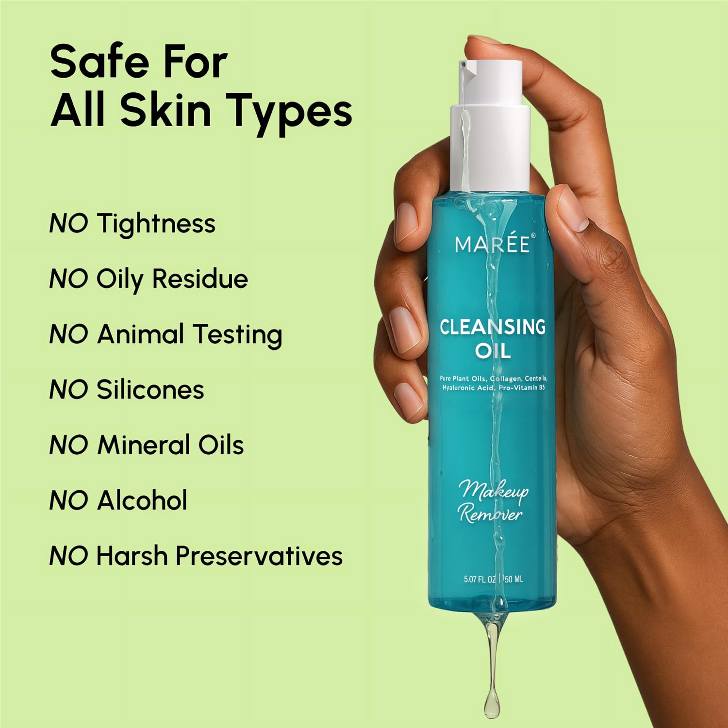 Gentle & Deep Cleansing Oil—MAREE Face Cleansing Oil will gently melt your daily makeup and worries off your face. This oil face cleanser removes waterproof makeup and SPF from your skin, leaving it smooth and soft. An ideal daily oil face wash!