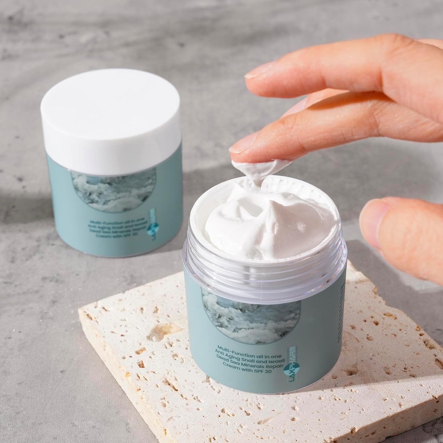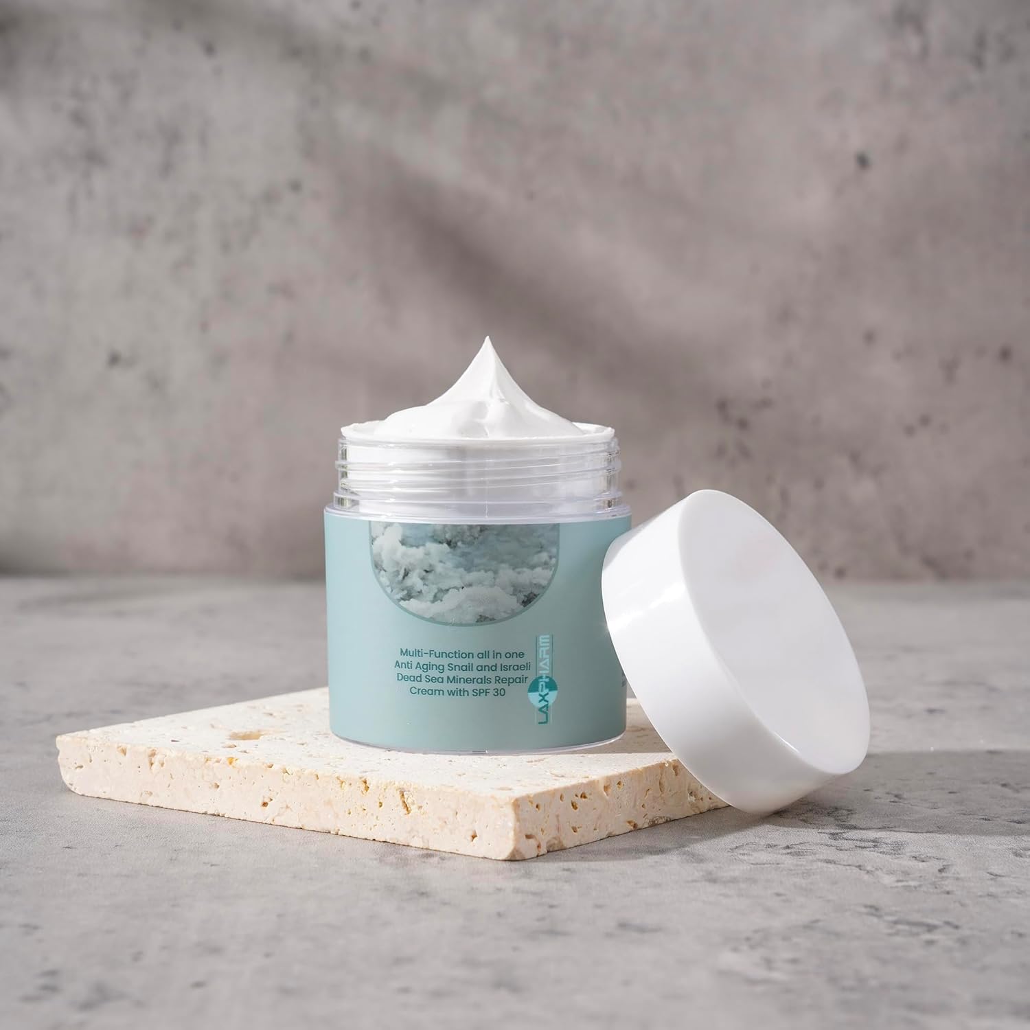Multi-Function Snail Mucin & Dead Sea Minerals Repair Cream with SPF 30 | Anti-Aging, UV Protection & Hydration for Radiant Skin for a Youthful Glow