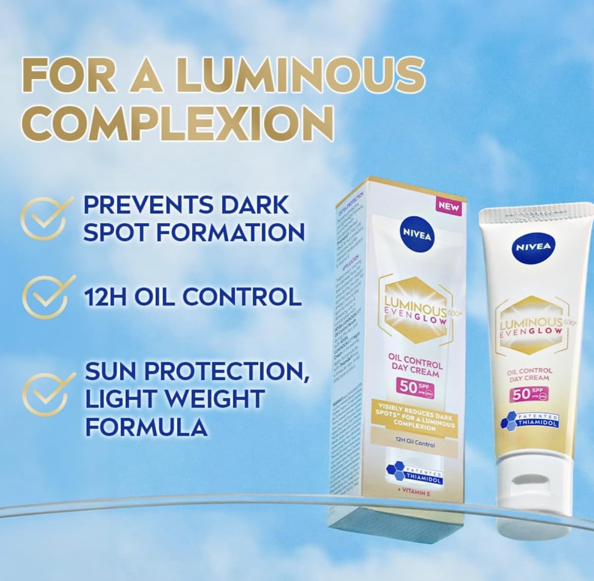 NIVEA Luminous Even Glow Oil Control Day Cream for face |SPF 50 with UV protection & UVA UVB filters | Thiamidol, Hyaluronic Acid, Vitamin E for Dark Spots Reduction & Deep Moisturization