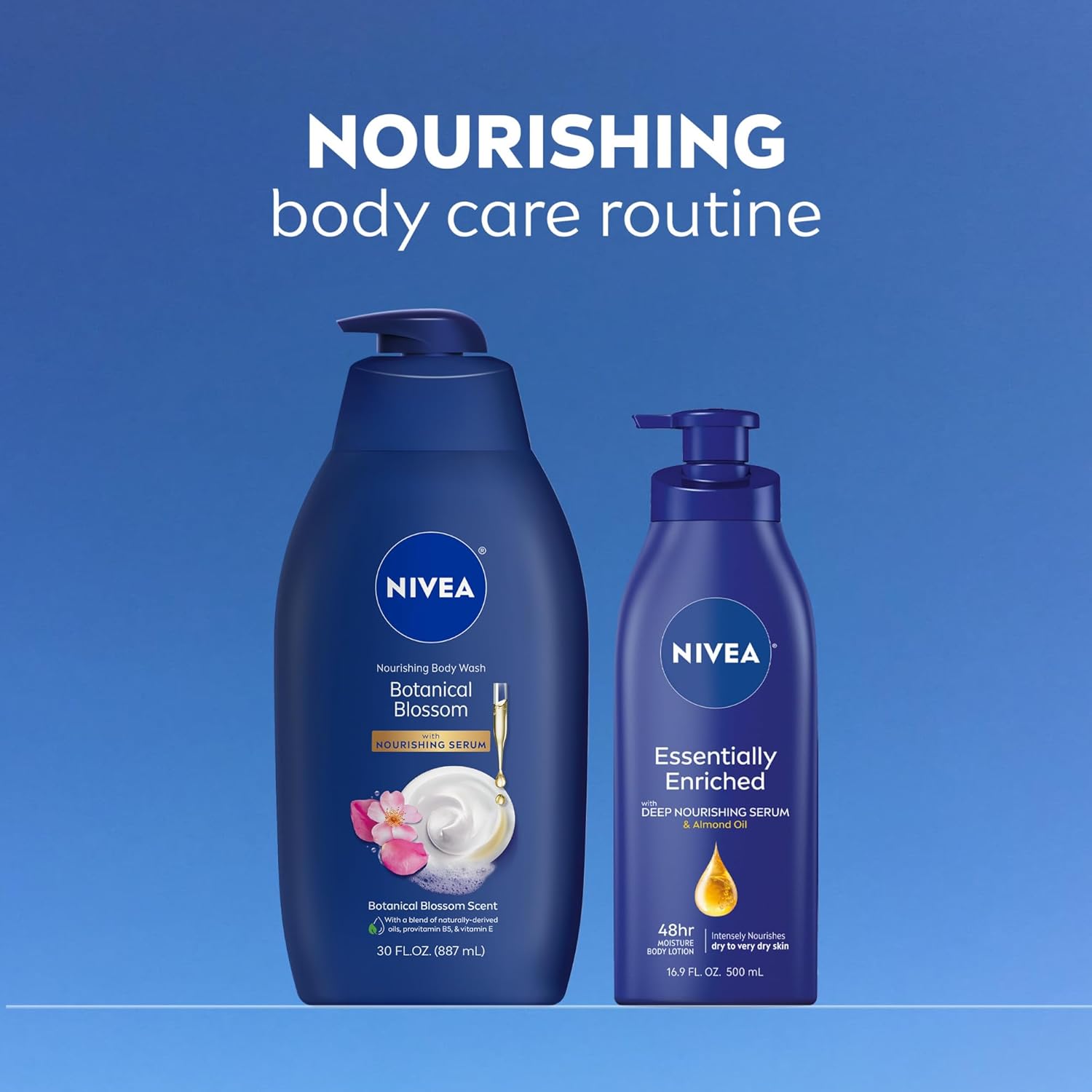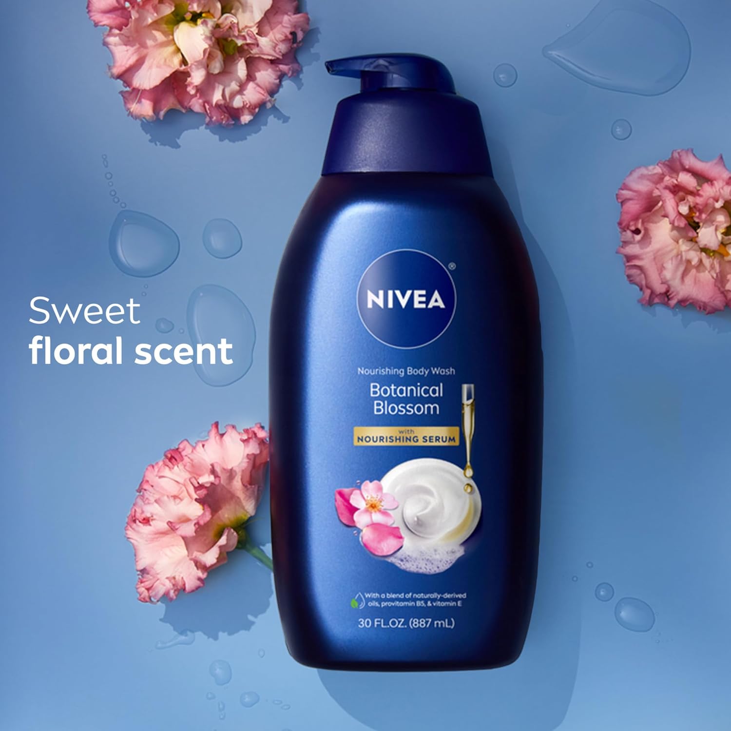 NIVEA Nourishing Botanical Blossom Body Wash with Nourishing Serum, Moisturizing Body Wash for Women, Enriched with Provitamin B5 and Vitamin E, 30 Fl Oz Bottle